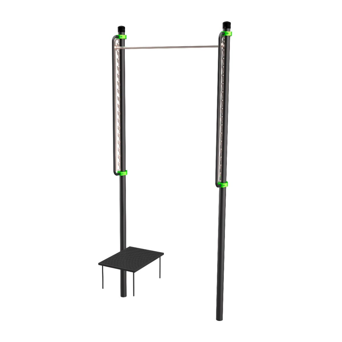 В состав комплекса входит два опорных столба с гребенкой для регулируемой перекладины высотой 3750 мм.