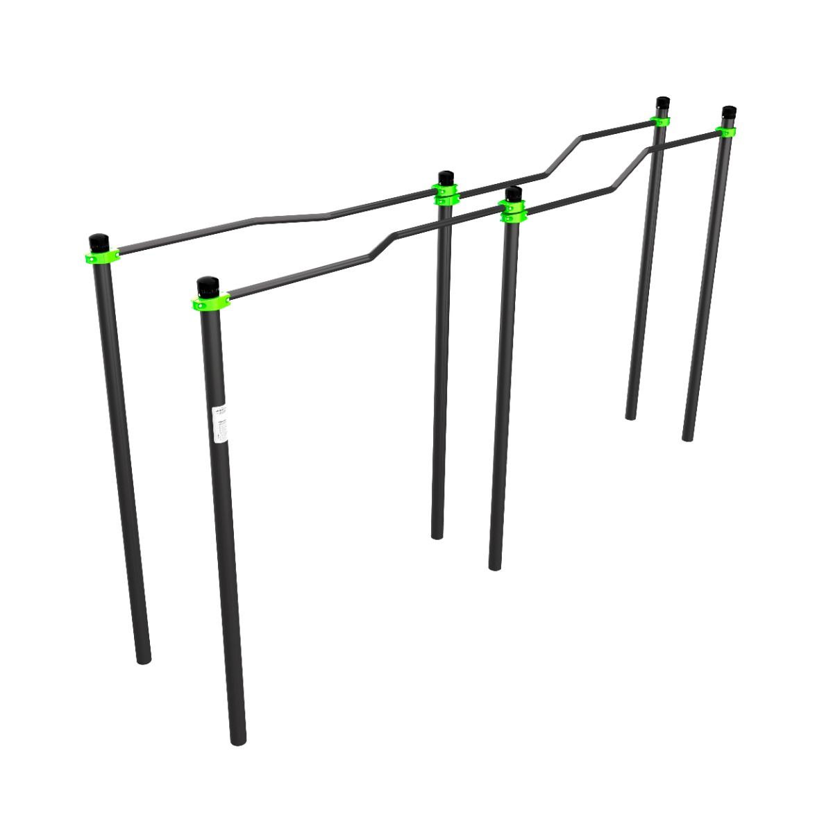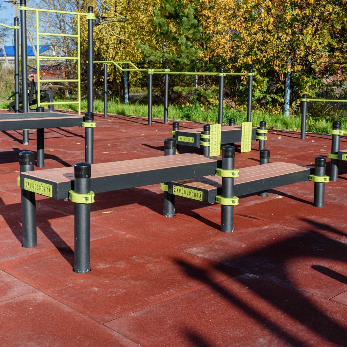 Перекладины брусьев выполнены из металлической трубы диаметром 42 мм с толщиной стенки 3,2 мм
