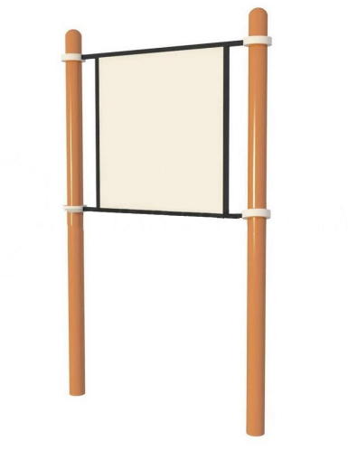Разборная конструкция на основе двух опорных столбов диаметром 89 мм и закрепленном на них при помощи разъемных металлических хомутов информационного поля из металлического листа