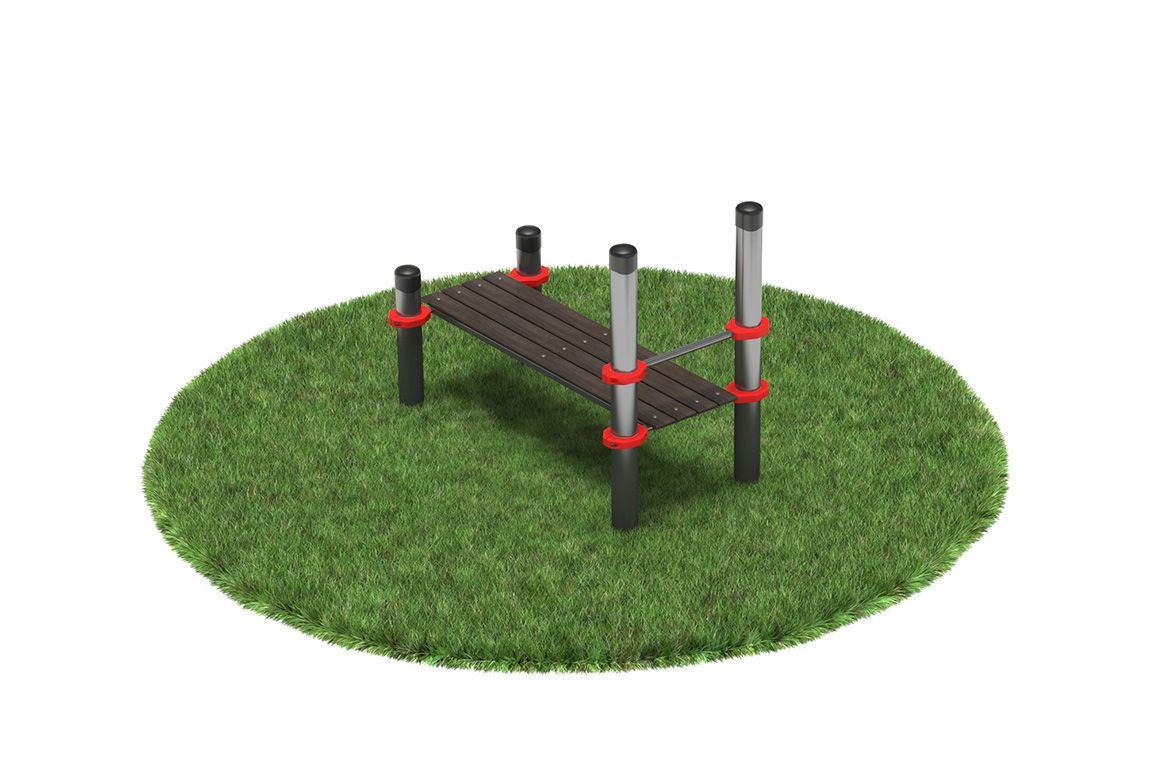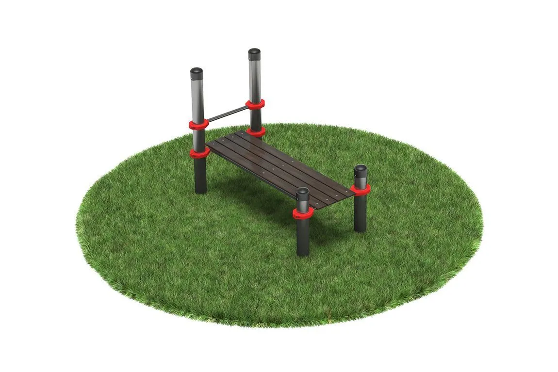 К столбам присоединяются элементы - горизонтальная лавка для пресса