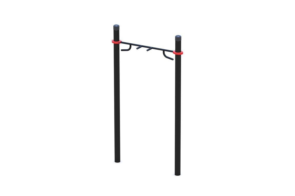 Уличный спортивный комплекс "Разнохватовый турник (три хвата)" состоит из двух опорных столбов, изготовленных из толстостенных металлических труб. Столбы сверху закрыты пластиковыми заглушками. В комплексе к опорным столбам при помощи металлических хомутов крепится перекладина (турник) с тремя видами хвата - это позволяет максимально эффективно проработать все группы мышц спины, рук и плечевого пояса.