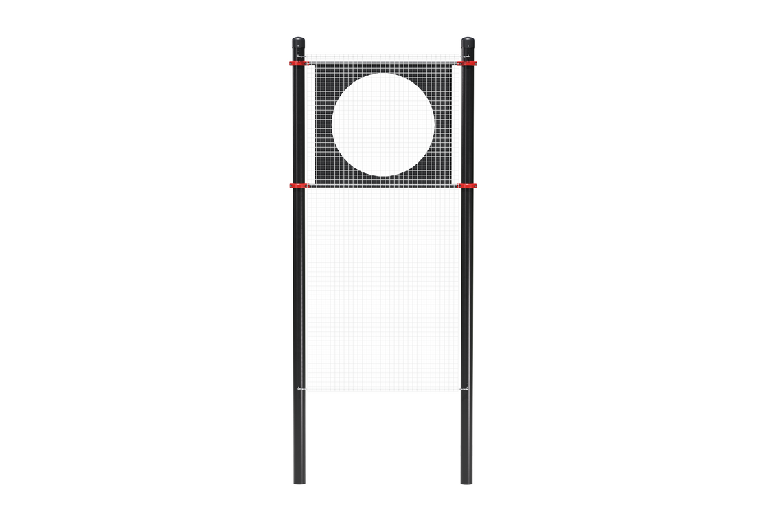 Мишень на стойках круглая для выполнения испытания «Метание теннисного мяча в цель дистанция 6 м» (диаметр отверстия 90 см) состоит из следующих элементов: