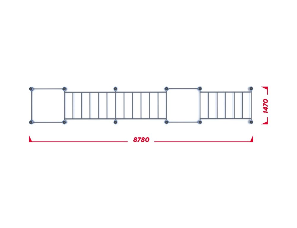 Технологические особенности производства и монтажа допускают незначительные отклонения размеров до 1% от заявленных параметров, что является общепринятой нормой для изделий данного типа и не влияет на функциональные и эксплуатационные характеристики комплекса. Информация по габаритам и весу приведена справочно для комплекса с опорными столбами диаметром 89 мм. Для опорных столбов диаметром 108 мм габариты увеличатся в большую сторону и сообщаются по запросу.