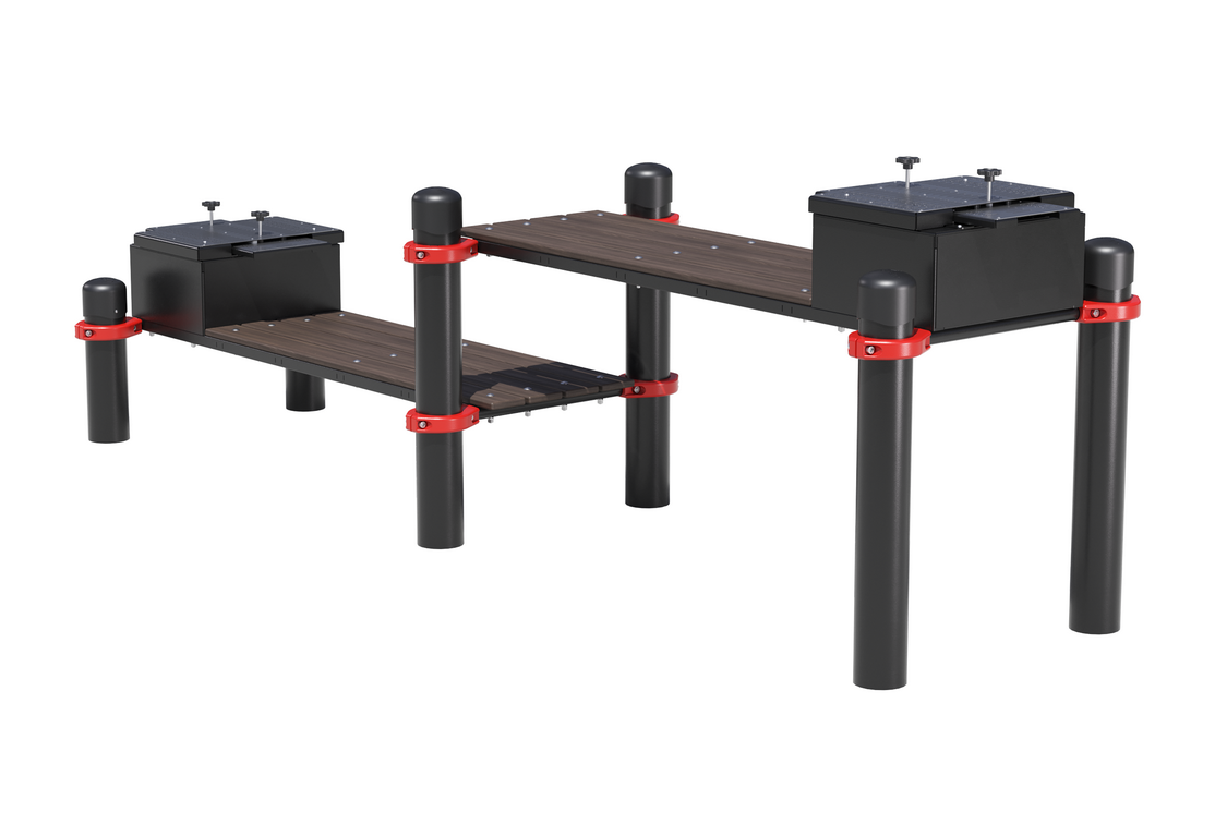 Платформа закрепляется на столбах посредством хомутов. Они полностью исключают ее смещение, а также обеспечивают высокие прочностные характеристики всей конструкции. Линейки для измерения гибкости выполнены из нержавеющей стали, поэтому они сохранят отличный внешний вид и возможность точной идентификации глубины наклона долгое время.
