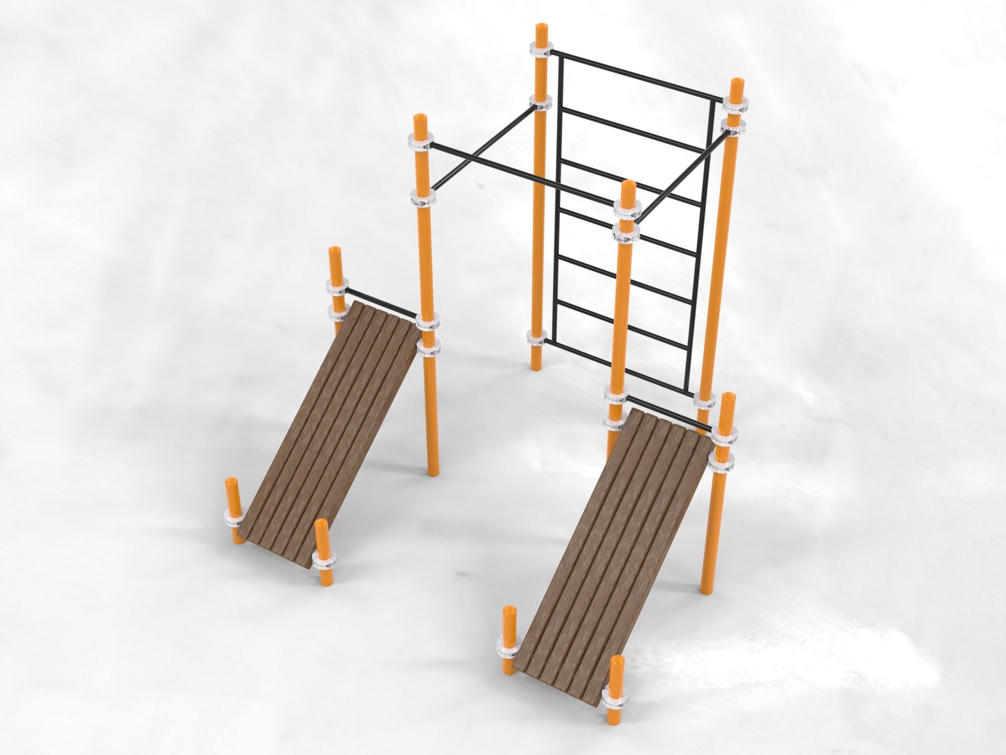 Двух скамей для пресса(регулируемой по высоте) фиксирующейся к столбам на высоте от 300 мм от поверхности основания.