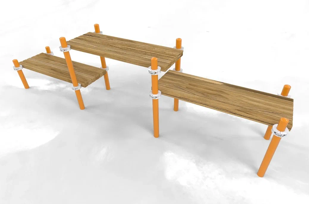 Трех лавок, которые состоят из комплекта бруса сечением 80×80 мм, длиной 1600 мм и проставочных колец.