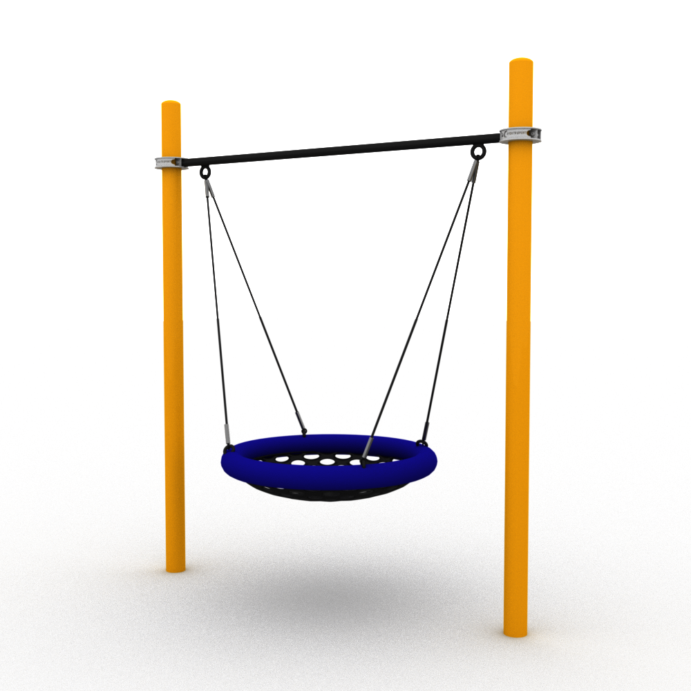 Качели «гнездо» с подвесами из полиэтиленового каната. Диаметр качелей — 1000 мм. Длина подвесов — 1.8 м. Рассчитаны на катание нескольких детей одновременно. Максимальная нагрузка на качели — 150 кг.