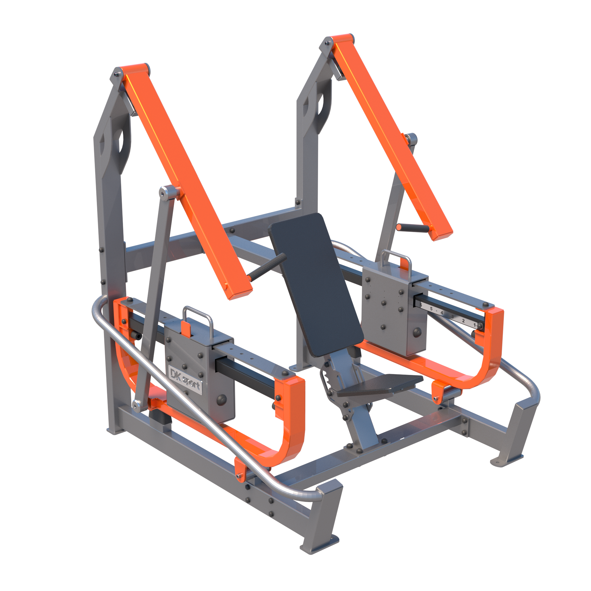 Изделие состоит из сварного каркаса, подвижных элементов, механизмов обеспечивающих их подвижность и системы переменных весов. Тренажер крепится к бетонному фундаменту при помощи анкерных болтов.