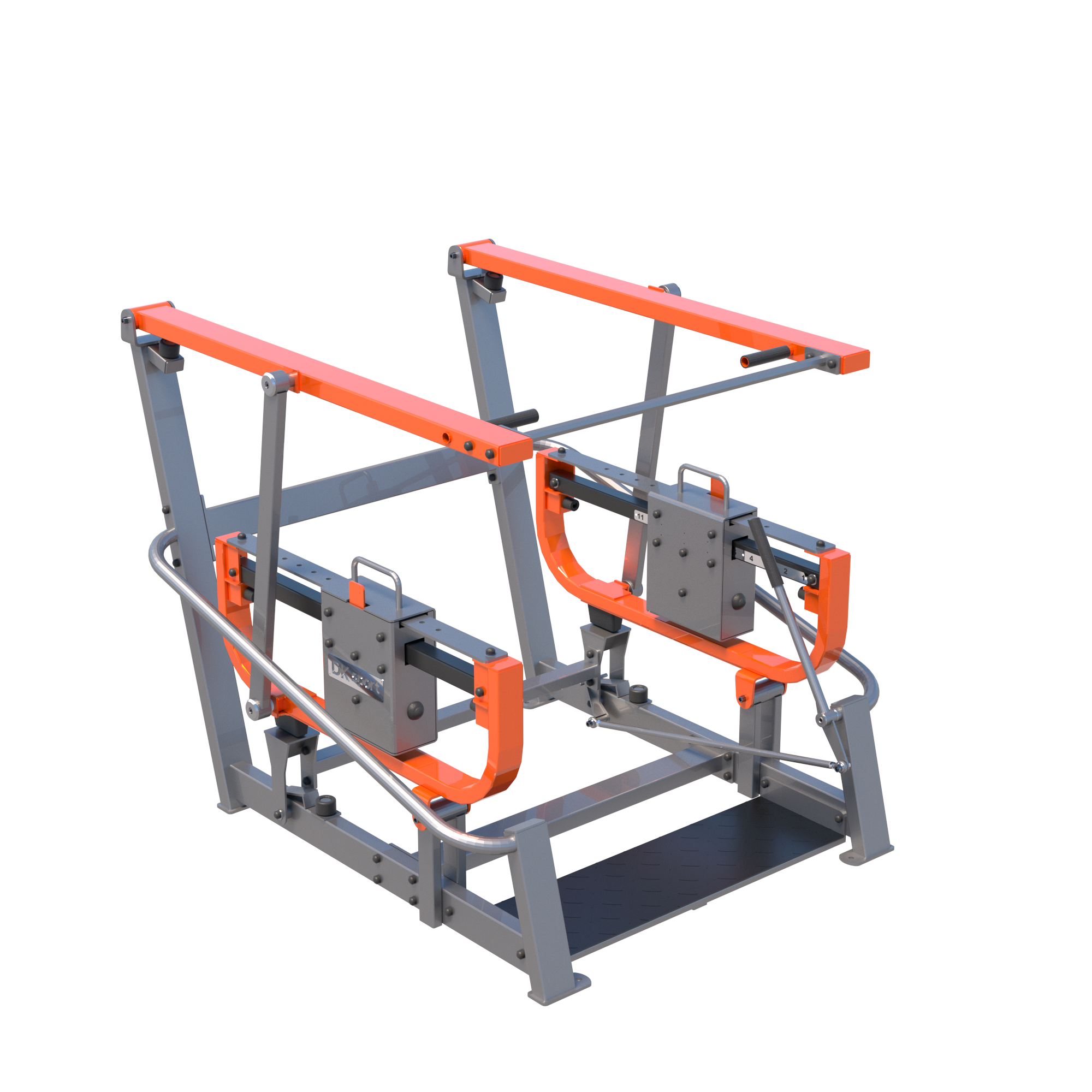 Изделие состоит из сварного каркаса, подвижных элементов, механизмов обеспечивающих их подвижность и системы переменных весов. Тренажер крепится к бетонному фундаменту при помощи анкерных болтов.