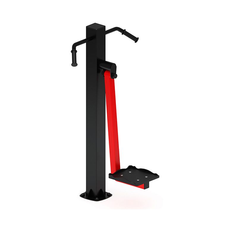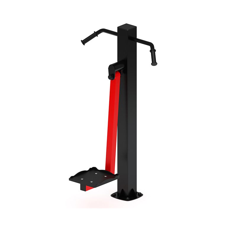 - Каркас (стойка): Выполнен из стального профиля сечением не менее 100х100 мм или трубы диаметром 133 мм, на основной стойке имеются ручки из гнутой трубы диаметром 32 мм. Для соединения с основанием в нижней части каркаса имеется фланец из стальной пластины 200х200 мм толщиной не менее 5 мм, металл имеет плавные радиусы, тщательную обработку швов, покрыт порошковой краской. На опоры для рук одеты пластиковые ручки. Сверху стойка закрыта пластиковой заглушкой. Размеры каркаса 230 х 840 х 1500мм.