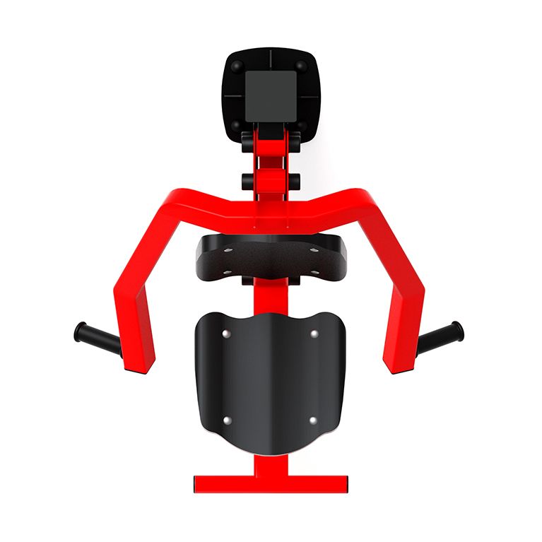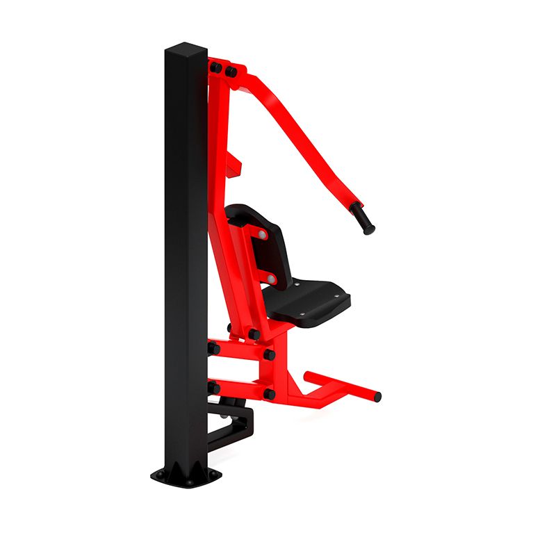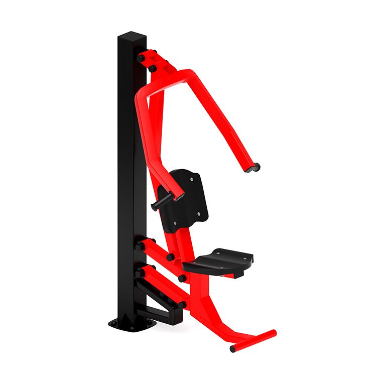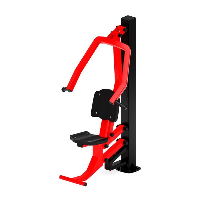 Уличный тренажер предназначен для установки в местах общественного пребывания детей и взрослых (уличные дворы, парки, школьные учреждения и т.д.). Он задействует широчайшие мышцы спины, грудные мышцы, большую круглую мышцу, задние части дельтовидных мышц, бицепсы, плечелучевые и трапецевидные мышцы. В результате работы на тренажере увеличивается мышечная масса груди, спины и рук, что формирует красивый силуэт спортивной фигуры. Полностью соответствует ГОСТам по безопасности и имеет соответствующие сертификаты. В состав уличного тренажера Жим от груди входит несколько элементов: