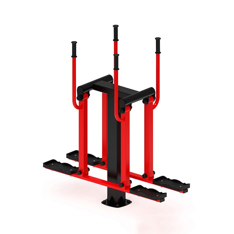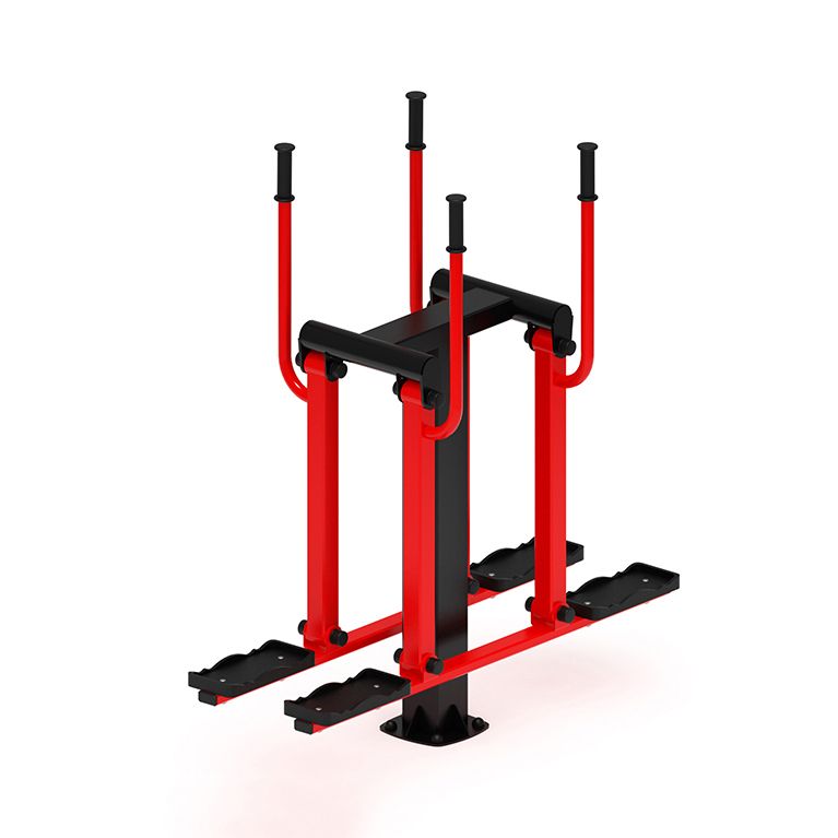 Уличный тренажер предназначен для установки в местах общественного пребывания детей и взрослых (уличные дворы, парки, школьные учреждения и т.д.). Тренажер рекомендуется для тренировки и укрепления мышц и суставов ног и поясницы, увеличения эластичности соединительных тканей, имитирует ходьбу на лыжах. Полностью соответствует ГОСТам по безопасности и имеет соответствующие сертификаты. В состав уличного тренажера Двойные лыжи входит несколько элементов: