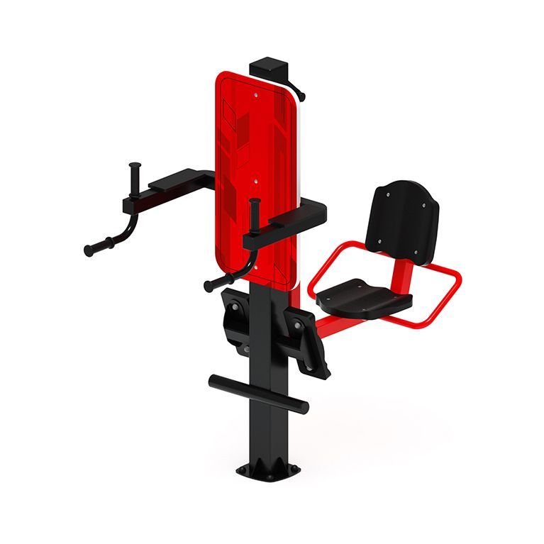 Уличный тренажер предназначен для установки в местах общественного пребывания детей и взрослых (уличные дворы, парки, школьные учреждения и т.д.). Тренажер предназначен для тренировки и укрепления мышц и суставов ног и рук, увеличивает эластичность соединительных тканей. Акцентированная проработка различных мышц ног (можно сместить акцент на ягодицы, приводящие/отводящие мышцы) и отсутствие осевой нагрузки на позвоночник делает его незаменимым упражнением для тех, у кого слабая спина (например, девушки) или имеется ее травма. Полностью соответствует ГОСТам по безопасности и имеет соответствующие сертификаты. В состав уличного тренажера Жим ногами + Брусья входит несколько элементов: