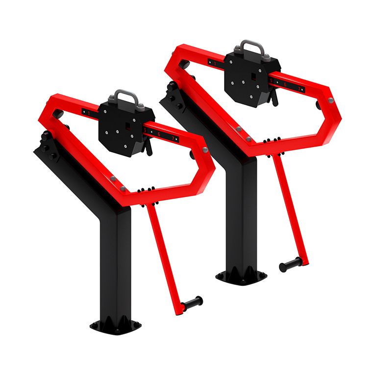 - Каркас (стойка): Выполнен из труб диаметром 42 мм, 33 мм, 27 мм и пластин из листовой стали различных размеров, для соединения с основанием в нижней части каркаса имеется фланец из стальной пластины 150х150 мм толщиной не менее 5 мм, металл имеет плавные радиусы, тщательную обработку швов, покрыт порошковой краской. Шарнирный узел снабжен подшипником 180503/ГПЗ . Сверху стойки закрыты пластиковой полусферичной заглушкой. В тренажёре есть ступенчатая регулировка нагрузки, которая производится посредством перемещения элементов отягощения, в комплекте 7 элементов. Вес одного элемента отягощения – 5 кг. Размеры 1100х1530х510 мм.