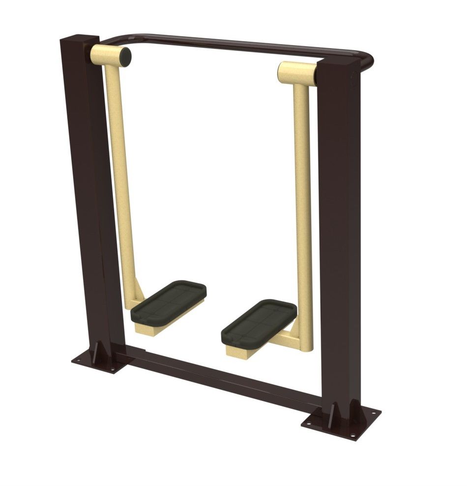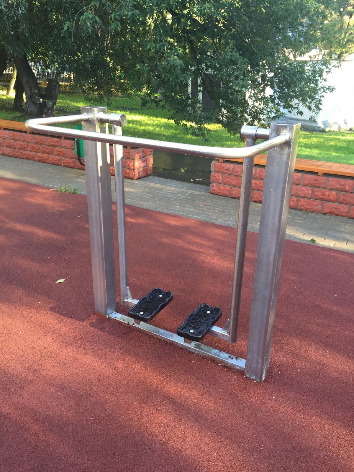 Для тренировки необходимо расположить ноги на платформах, находясь между вертикальными стояками, держаться за рукоятки.