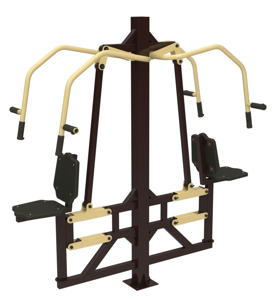 Использование: сядьте на сиденье спиной к стойке, возьмитесь за параллельные или поперечные рукоятки. Оттолкните рукоятки от себя и медленно верните в исходное положение. При этом сиденье поднимется и опустится. Усилие от рукоятей передается вертикальному движению сидения, которому противодействует вес тренирующегося.