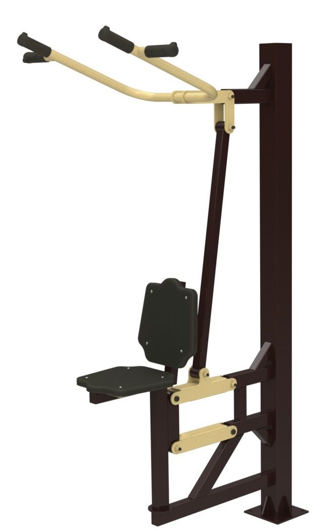 Использование: сядьте на сиденье спиной к стойке, возьмитесь за параллельные или поперечные рукоятки и потяните на себя, затем плавно поднимите. При этом сиденье поднимется и опустится. Усилие от рукоятей передается вертикальному движению сидения, которому противодействует вес тренирующегося.