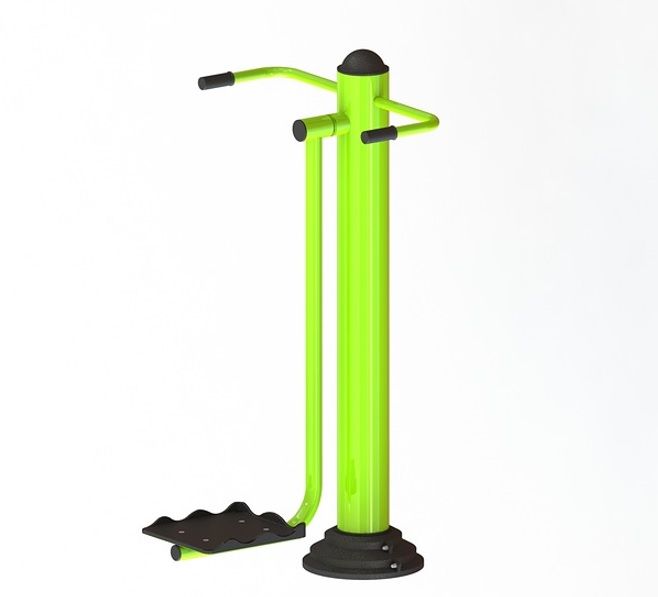 Встаньте на платформу, лицом к вертикальной стойке, руками охватить рукояти тренажёра, раскачивайте ноги вправо-влево, в то время как тело удерживается в вертикальном положении силой рук.