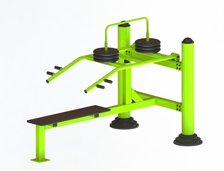 Уличный тренажёр «Жим лёжа с изменяемой нагрузкой» предназначен для стационарной установки на уличной площадке. Упражнения в тренажере имитируют жим штанги и развивают мышцы спины, груди и рук. Нагрузка в тренажере осуществляется за счет веса металлических обрезиненных дисков. Шаг нагрузки 10 кг, максимальный вес 60 кг. Два уровня хвата для людей разного роста. Подходит для пользователей разного уровня физической подготовки.