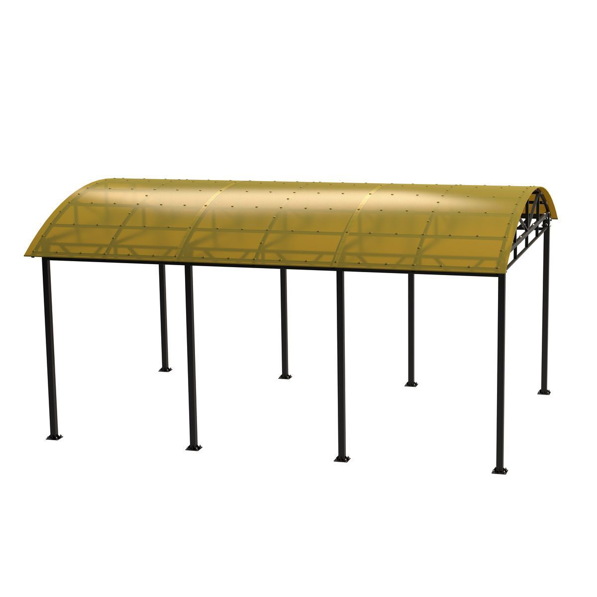 Опорные столбы навеса выполнены из профильных труб 80×80 мм с толщиной стенки 3 мм.