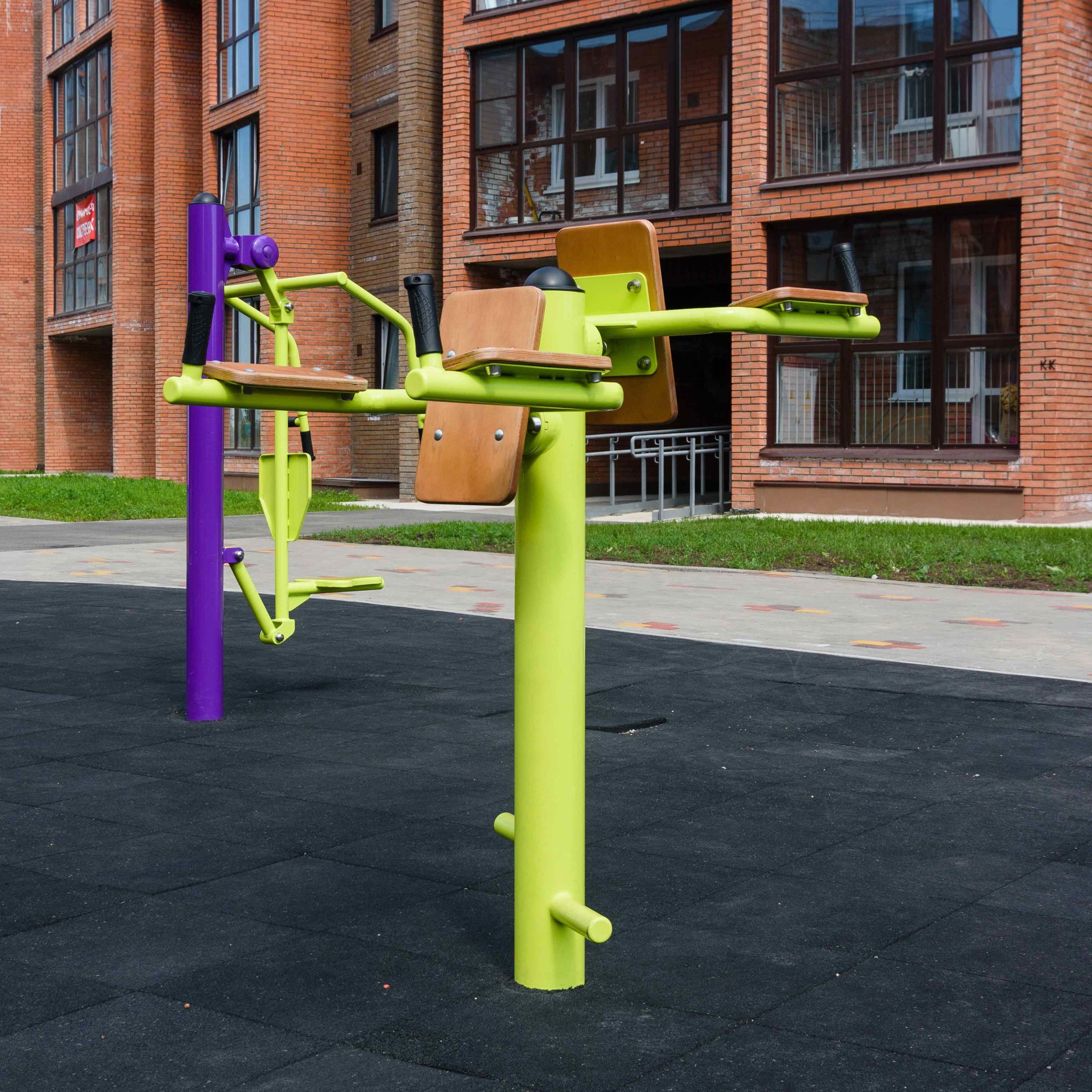 Рукояти для хвата и поддержания тела во время выполнения упражнения изготовлены из стальной трубы диаметром 33 мм с толщиной стенки 3,2 мм.