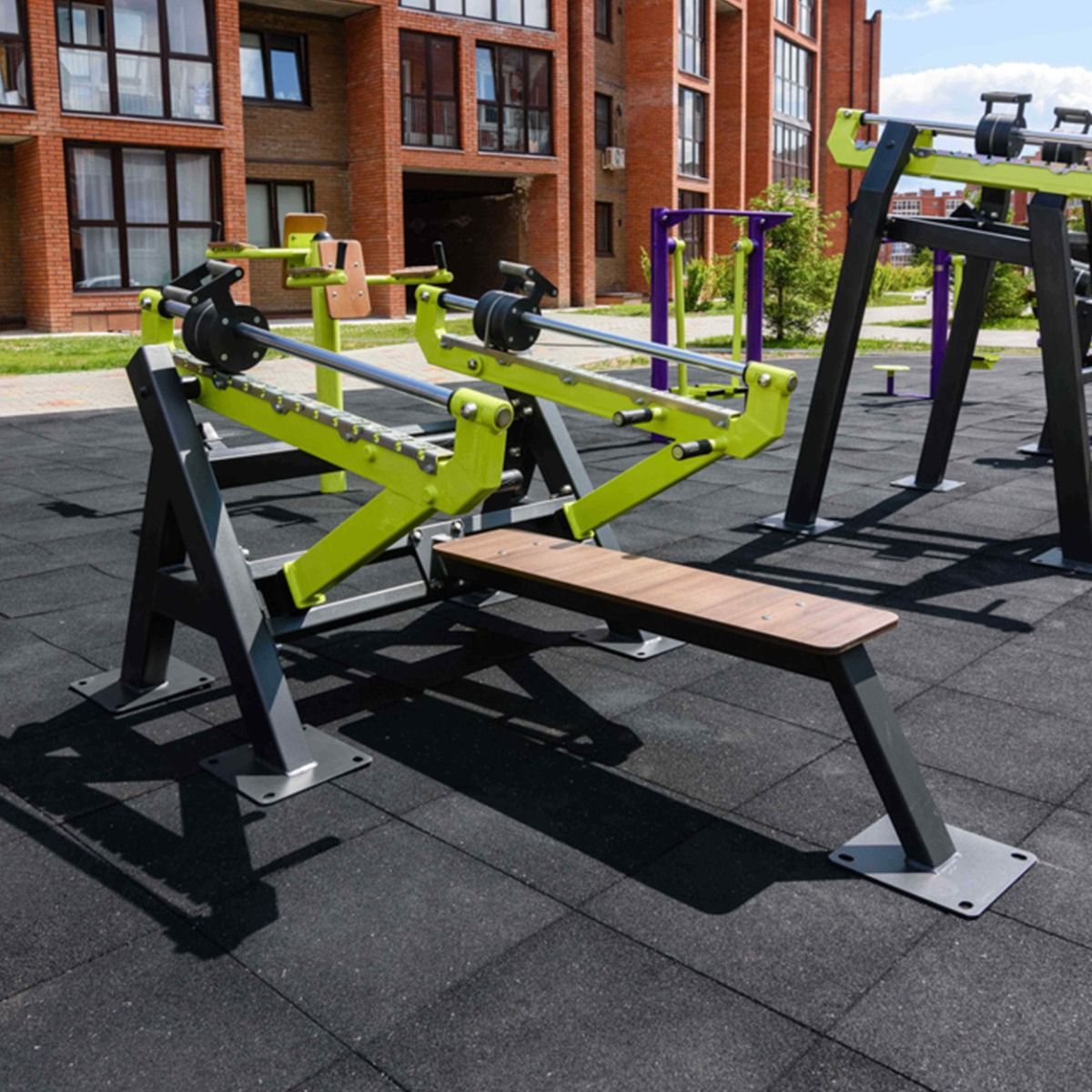 Скамья тренажера 1200×300 мм выполнены из высокопрочного ударостойкого HPL-пластика толщиной 12 мм.