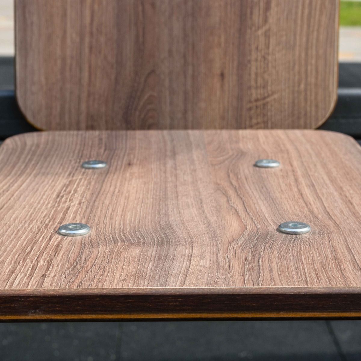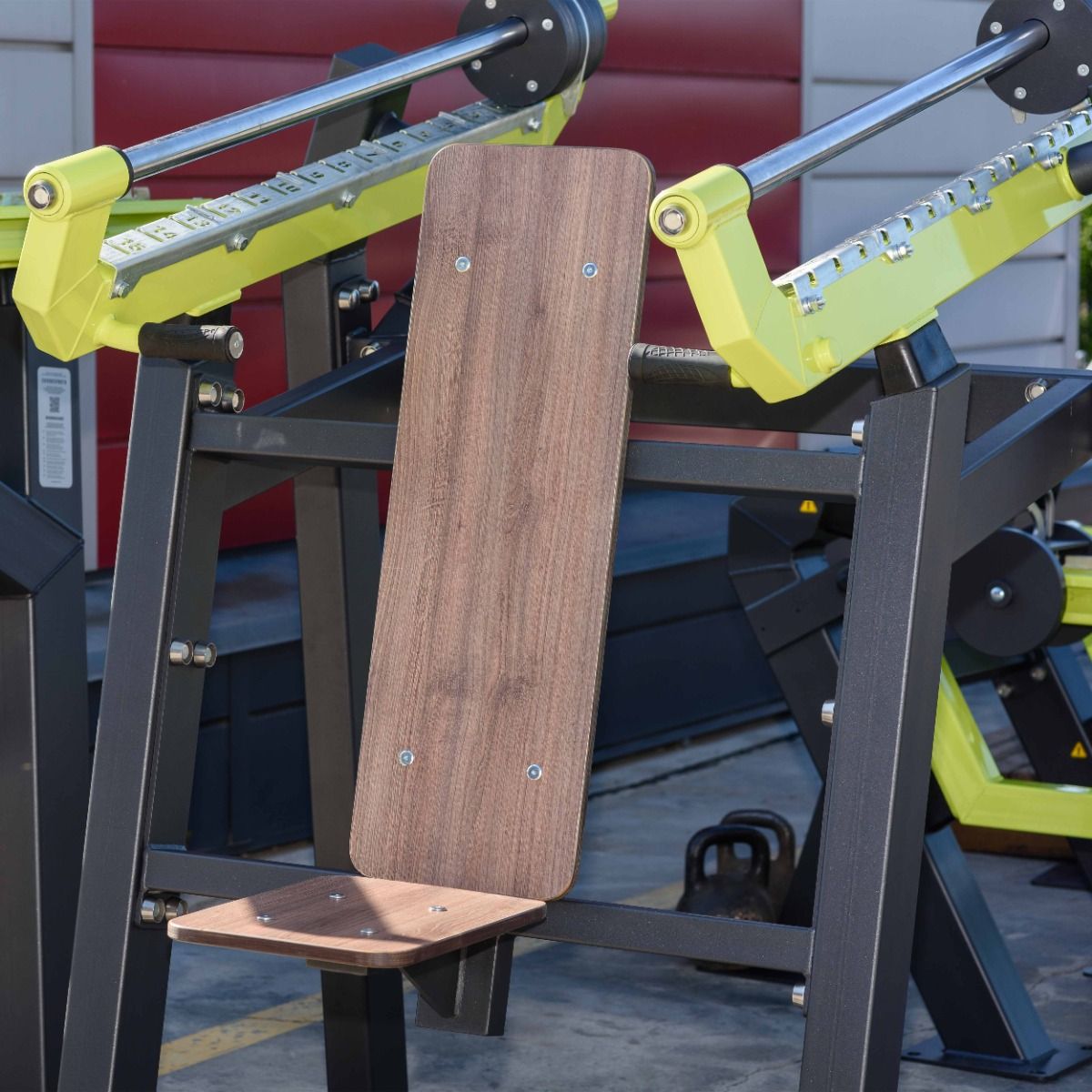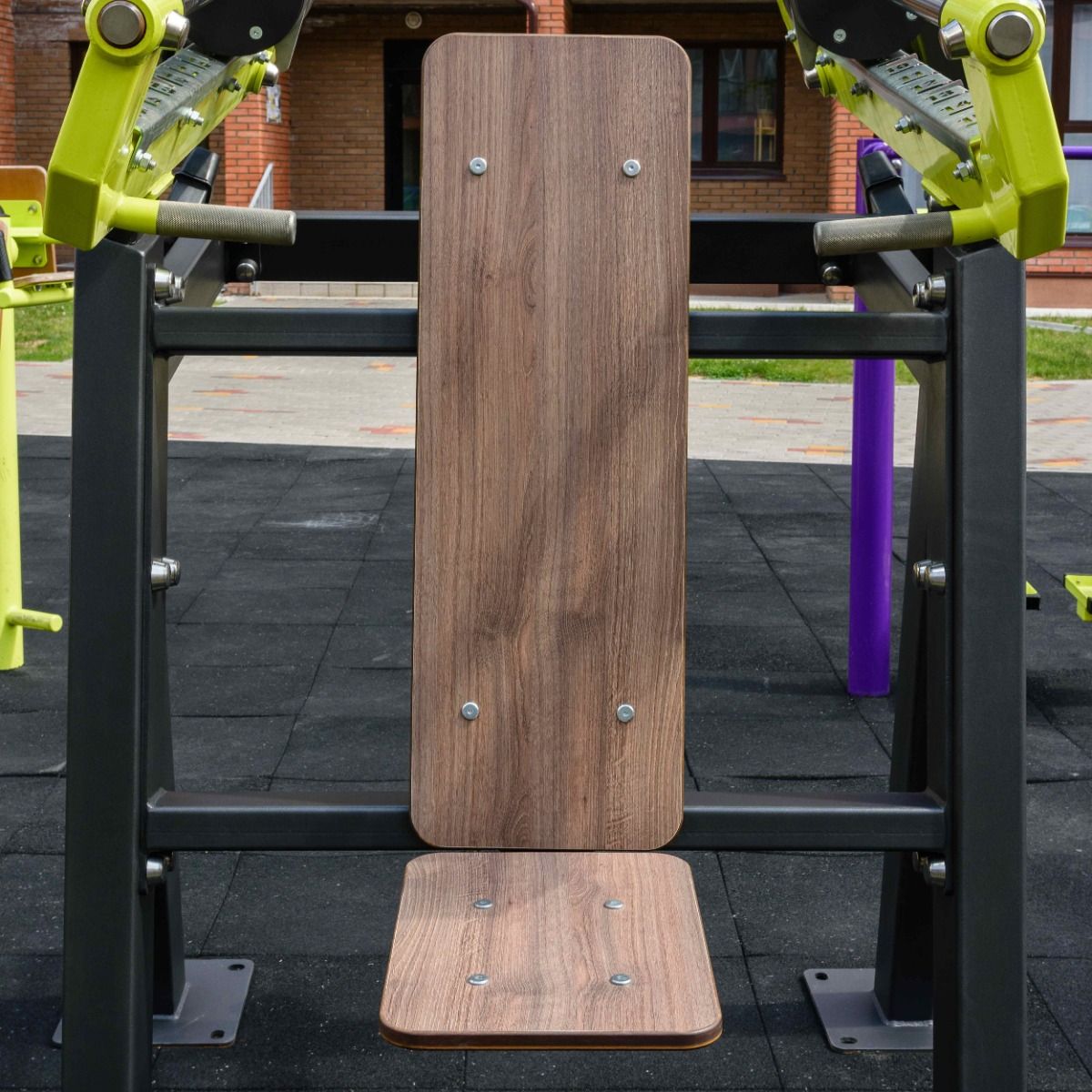 Сиденье 410×300 мм и спинка тренажера 900×300 мм выполнены из высокопрочного ударостойкого HPL-пластика толщиной 12 мм.
