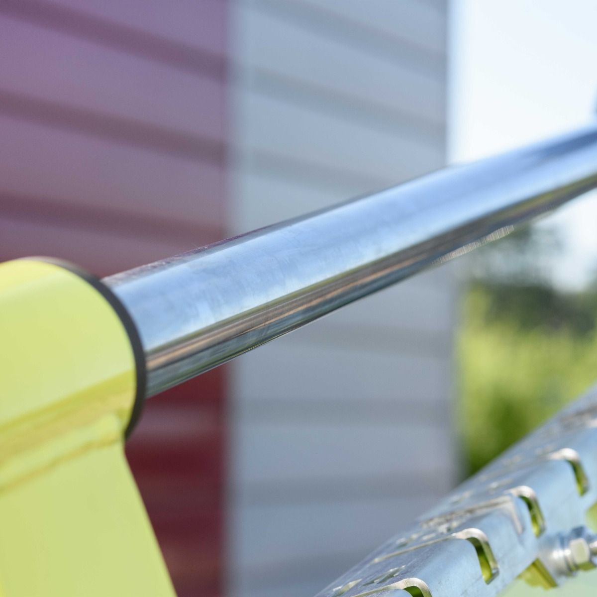 Направляющие для перемещения грузовых блоков изготовлены из нержавеющей стальной трубы диаметром 40 мм, что обеспечивает устойчивость к коррозии, высокую износостойкость и стабильность хода подвижных элементов в условиях эксплуатации при темперных перепадах и метеорологических явлениях.