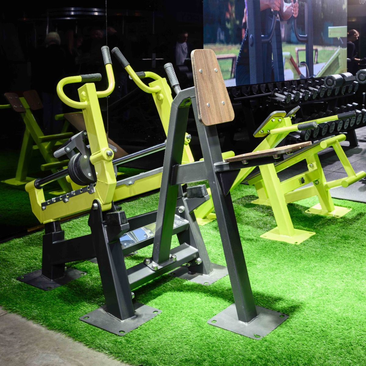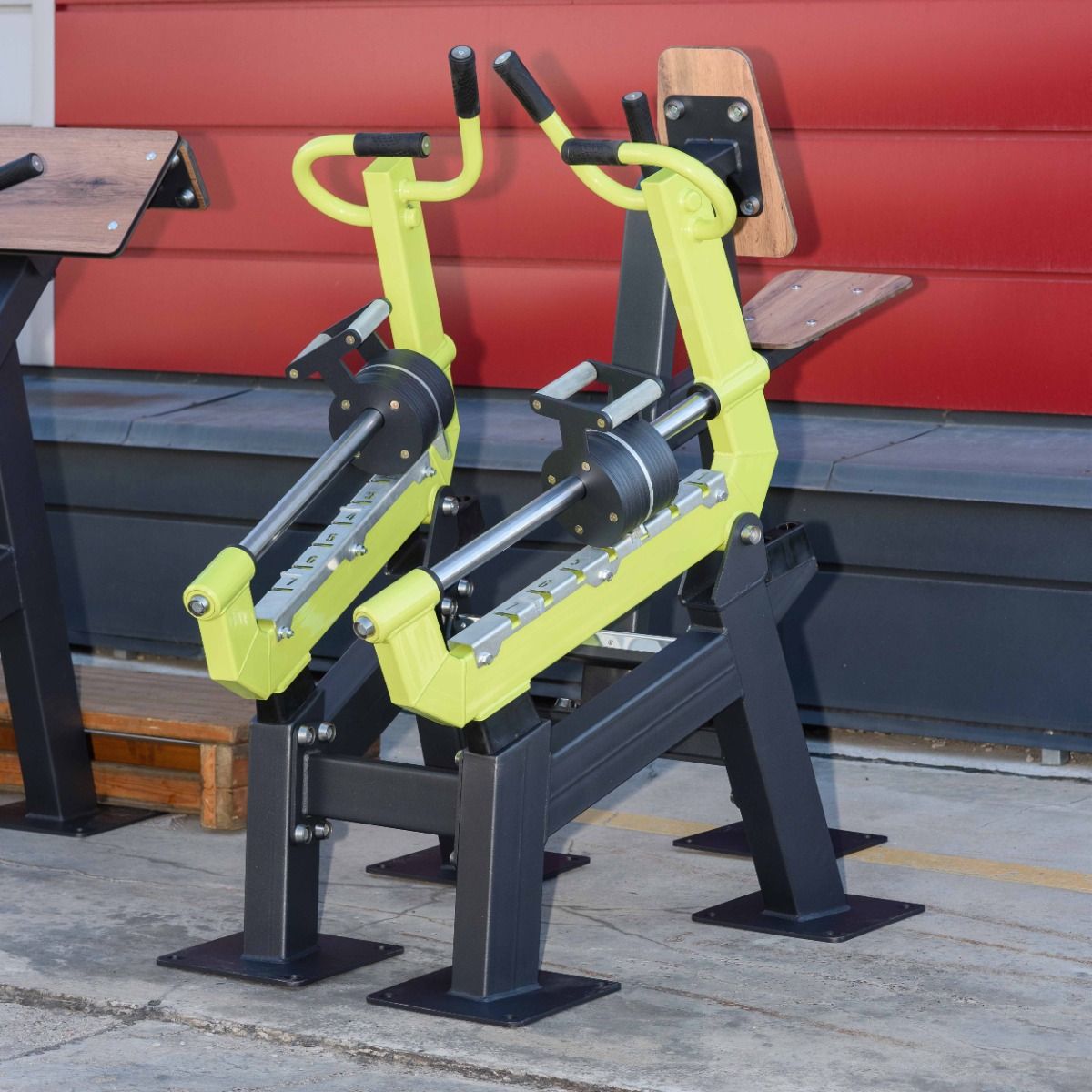 Сиденье 380×290 мм и спинка тренажера 380×290 мм выполнены из высокопрочного ударостойкого HPL-пластика толщиной 12 мм. Угол наклона спинки и сиденья 15°.