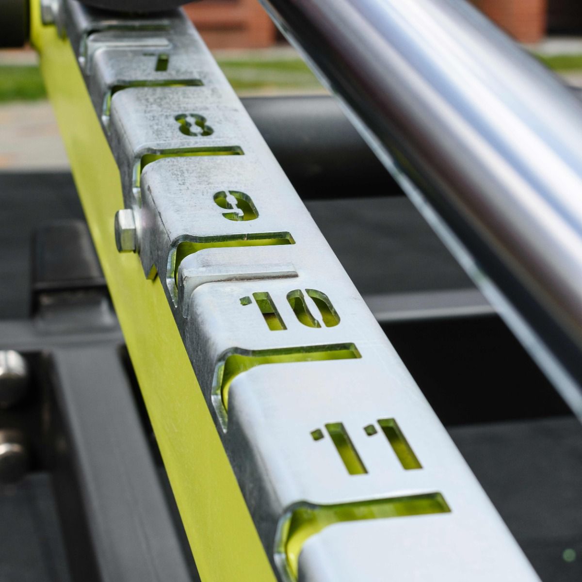 Маркировка уровней нагрузки выполнена методом лазерной резки по листовому металлу на оборудовании с ЧПУ, что обеспечивает высокую точность, стойкость и долговечность в условиях уличной эксплуатации.