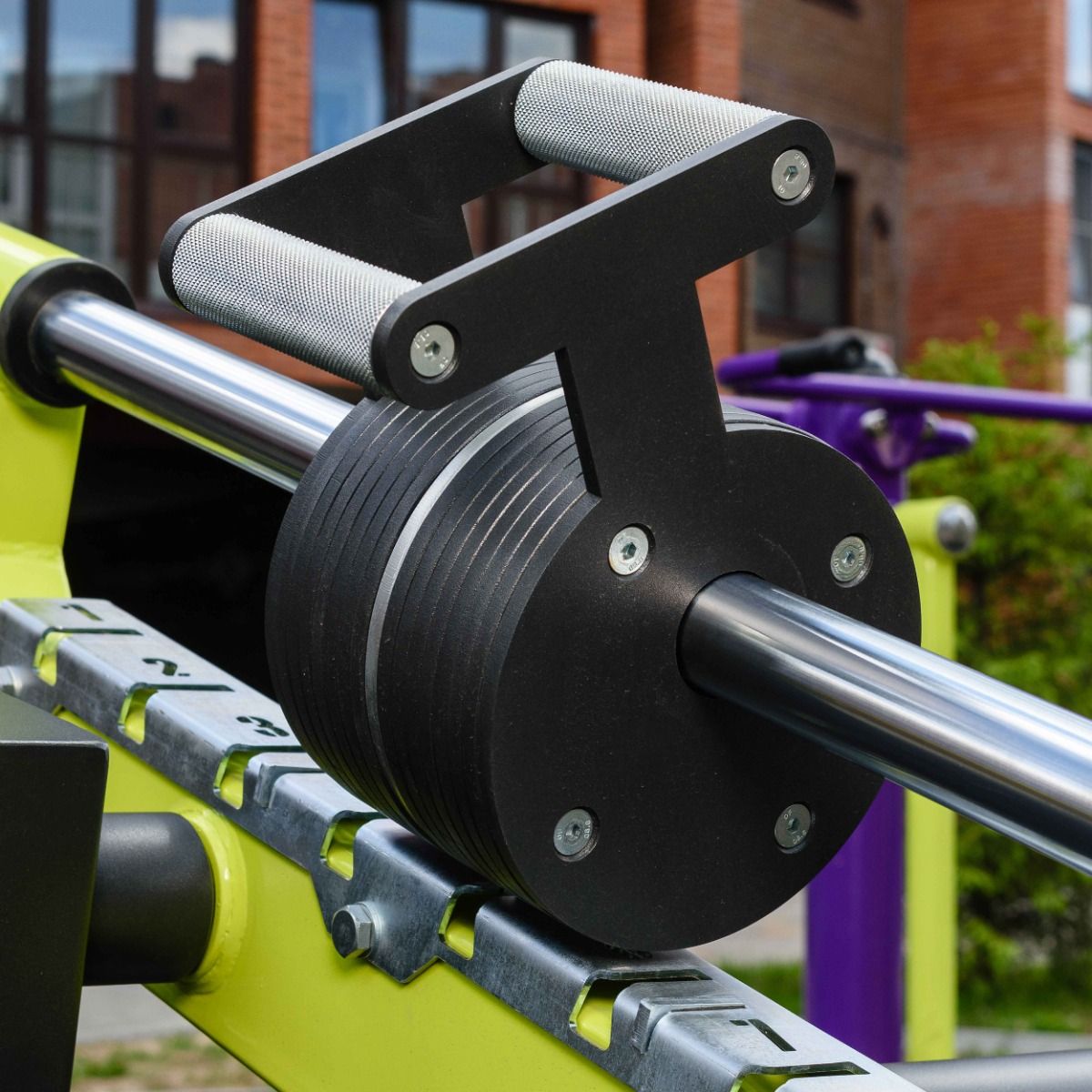 Подвижные рычаги оснащены передвижными грузовыми блоками, изготовленными из листового металла толщиной 8 мм. Перемещение грузовых блоков осуществляется с использованием подшипников при помощи парных рукоятей длиной 120 мм из металлического прутка с мягкой накаткой.