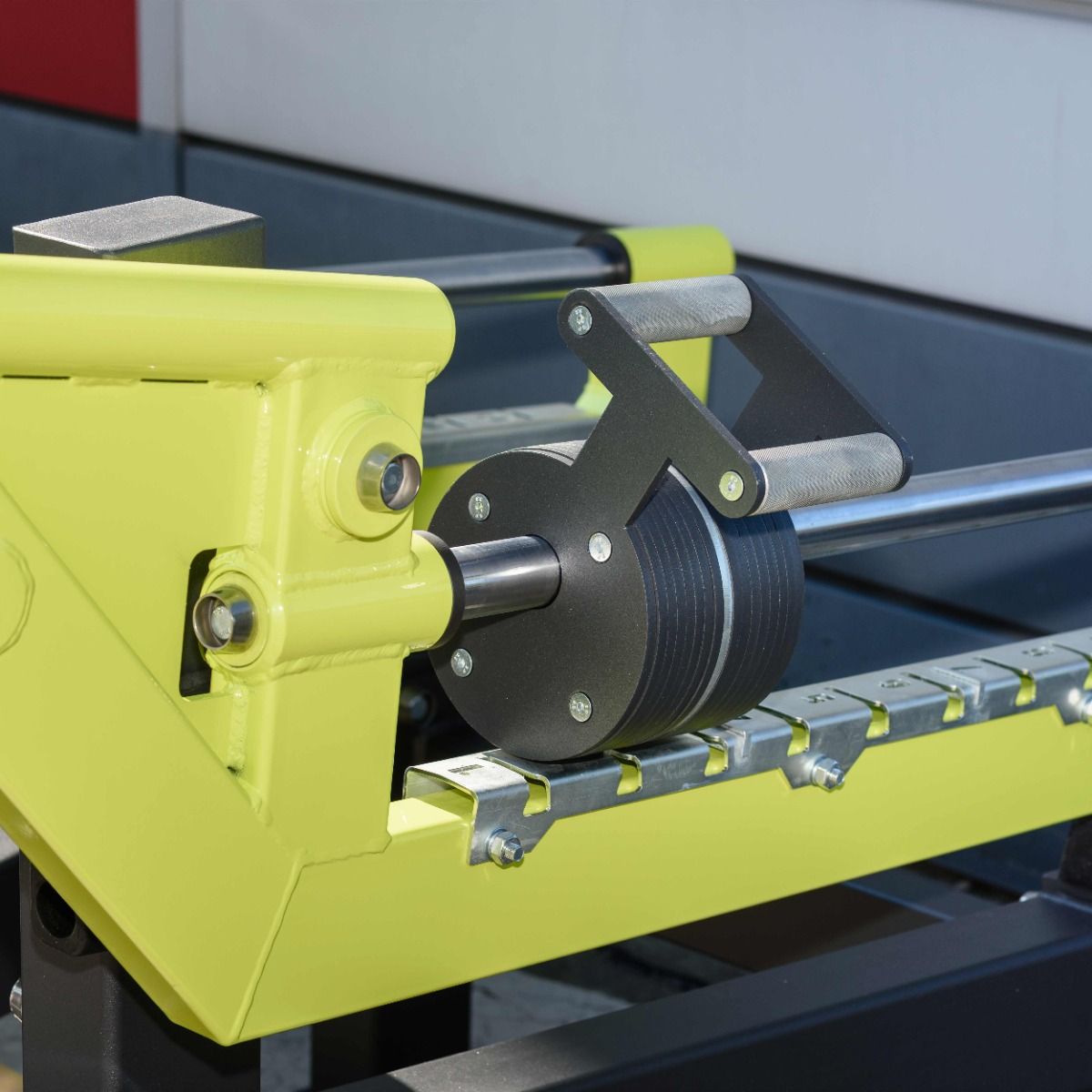 Подвижные рычаги оснащены передвижными грузовыми блоками, изготовленными из листового металла толщиной 8 мм. Перемещение грузовых блоков осуществляется с использованием подшипников при помощи парных рукоятей длиной 120 мм из металлического прутка с мягкой накаткой.