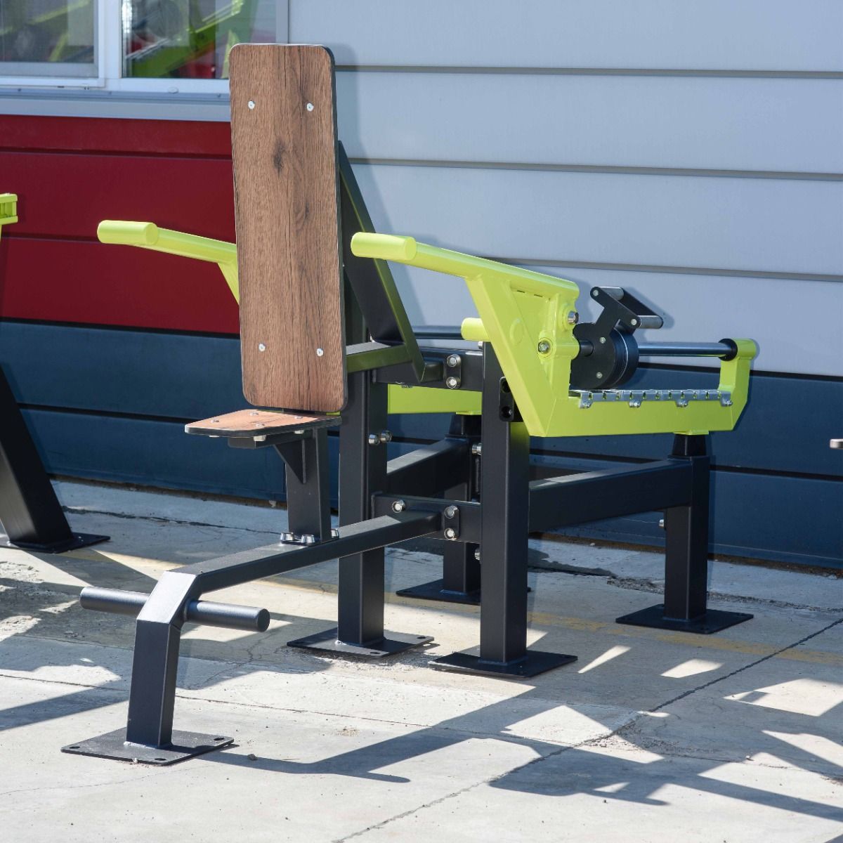 Сиденье 410×300 мм и спинка тренажера 900×300 мм с наклоном 5° выполнены из высокопрочного ударостойкого HPL-пластика толщиной 12 мм.
