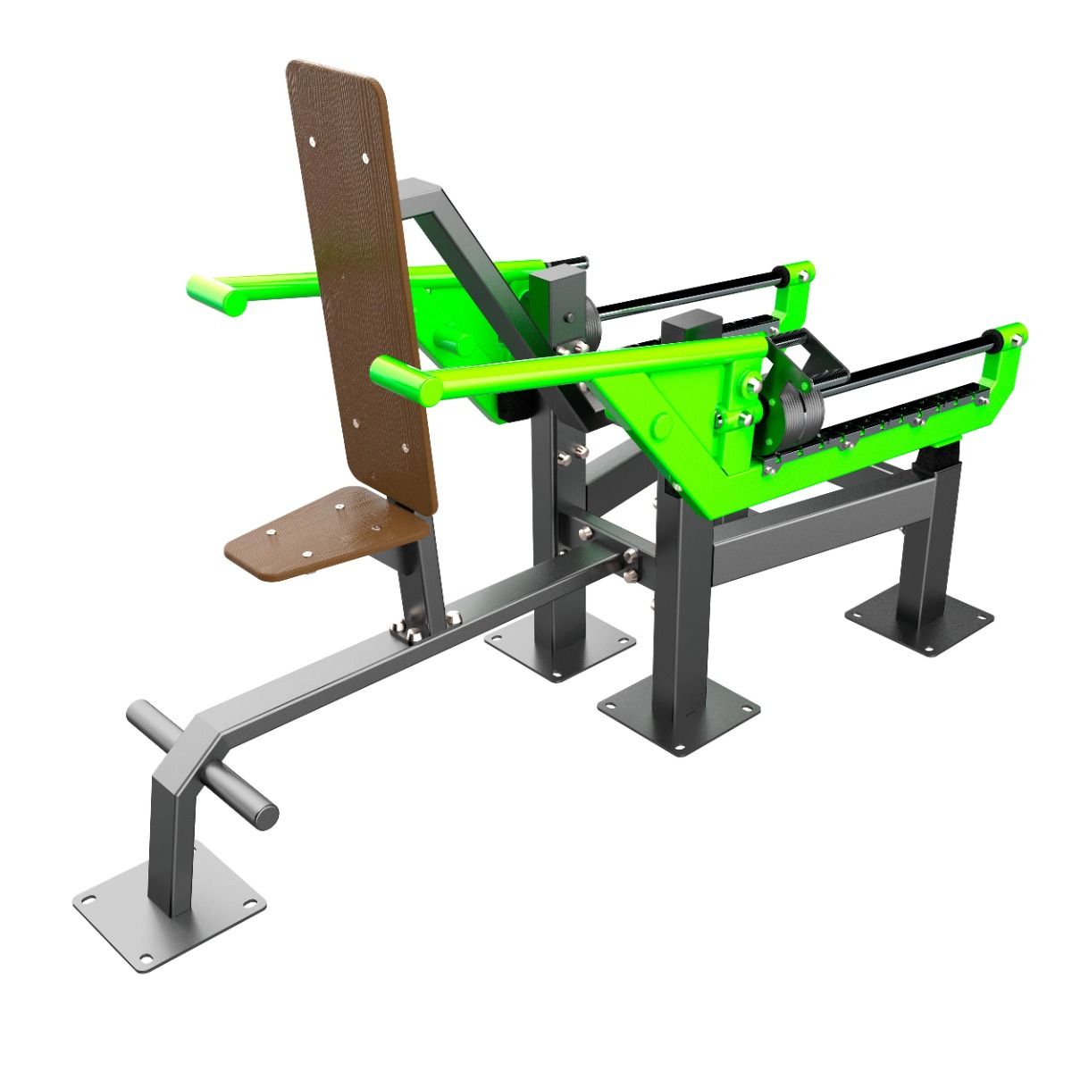 Несущая конструкция уличного тренажера выполнена из профильных труб 120×80 мм и 100×50 мм с толщиной стенки 3 мм. Детали изготовлены из листового металла толщиной 8 мм, 5 мм и 3 мм.