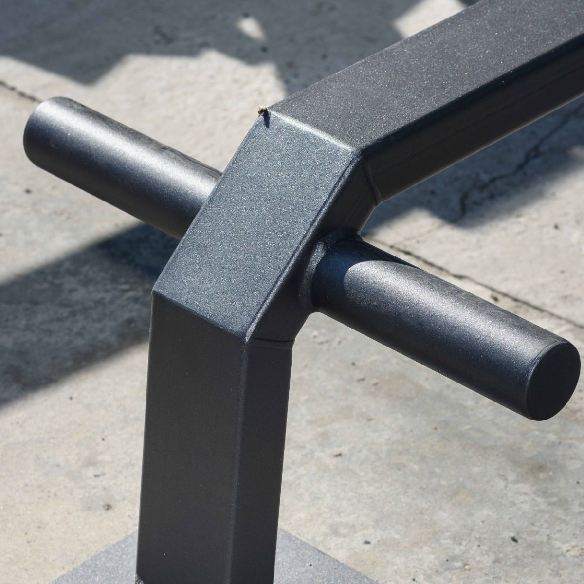 На раме тренажера закреплена опора для ног из металлической трубы диаметром 57 мм с толщиной стенки 3,5 мм. Длина опоры (одна сторона) 500 мм.