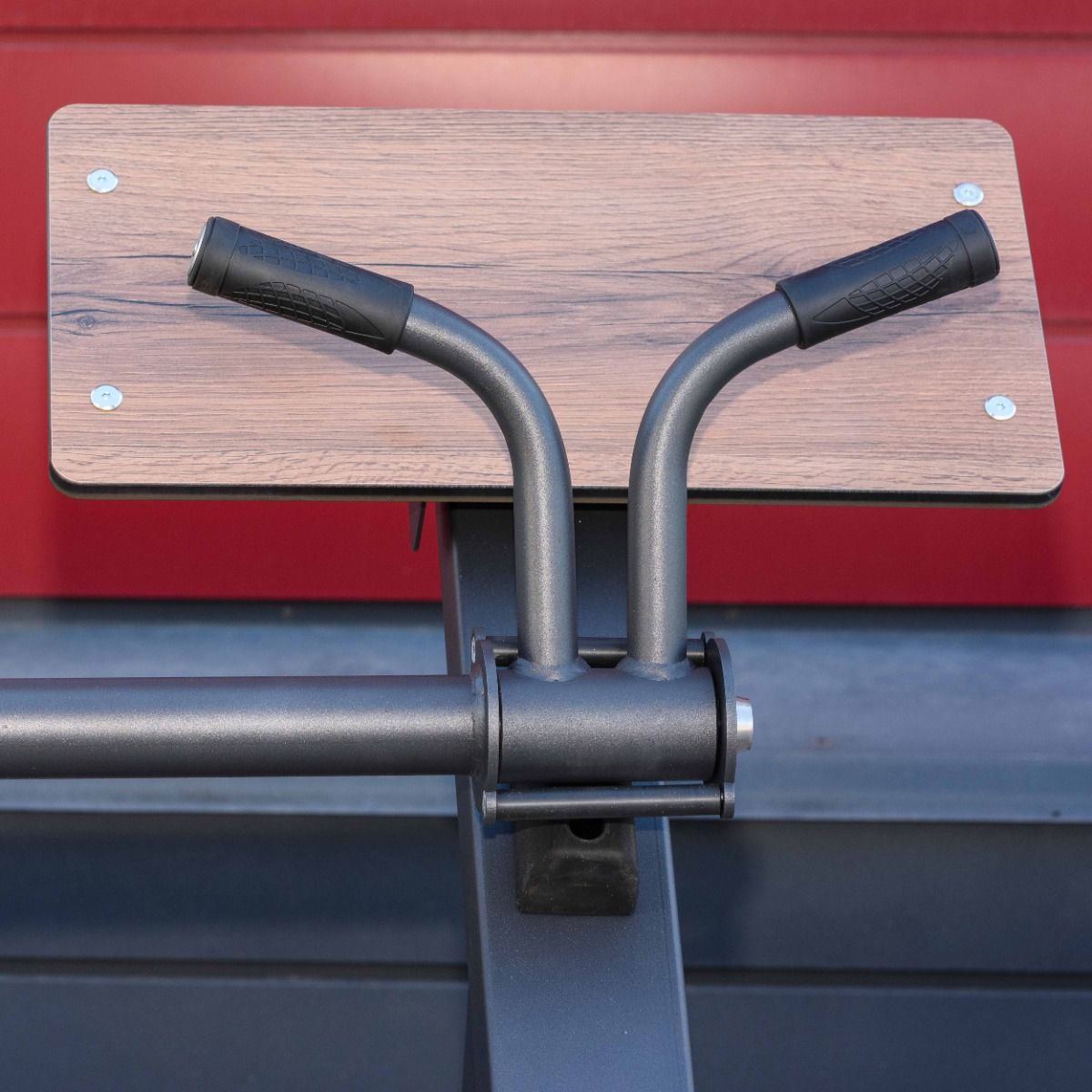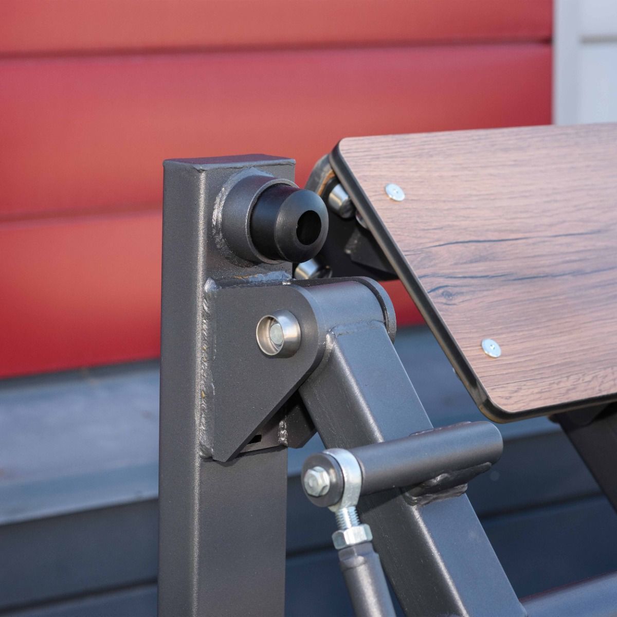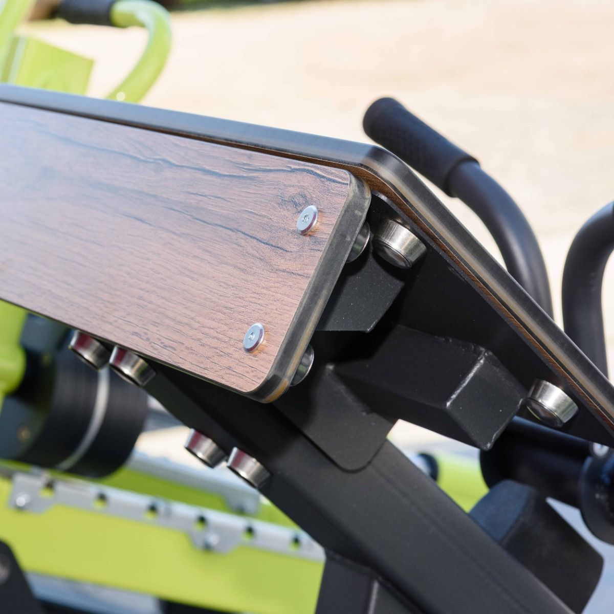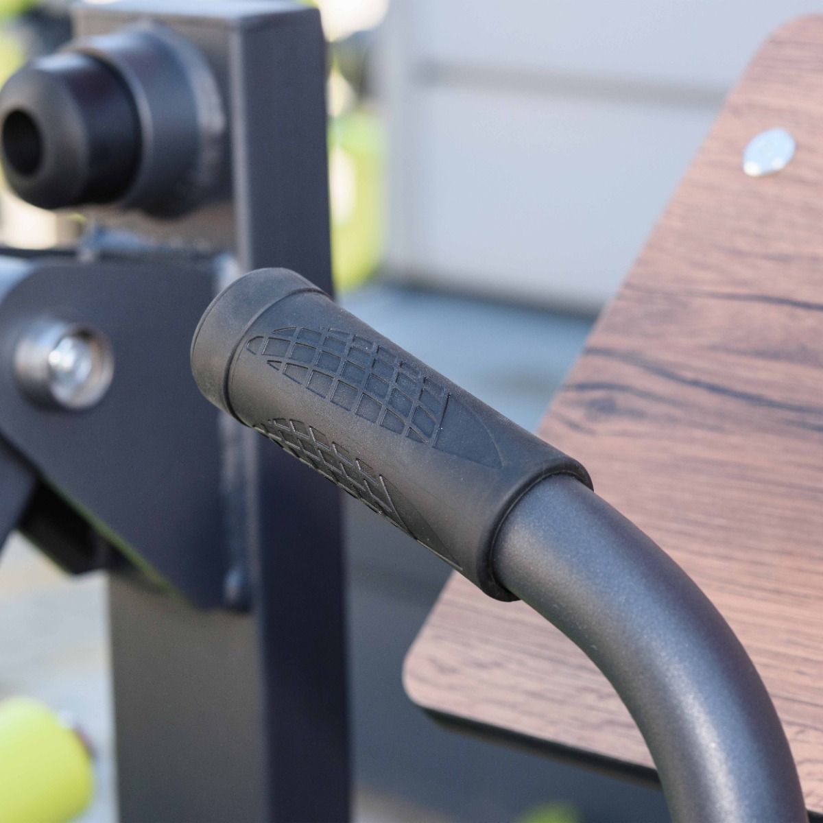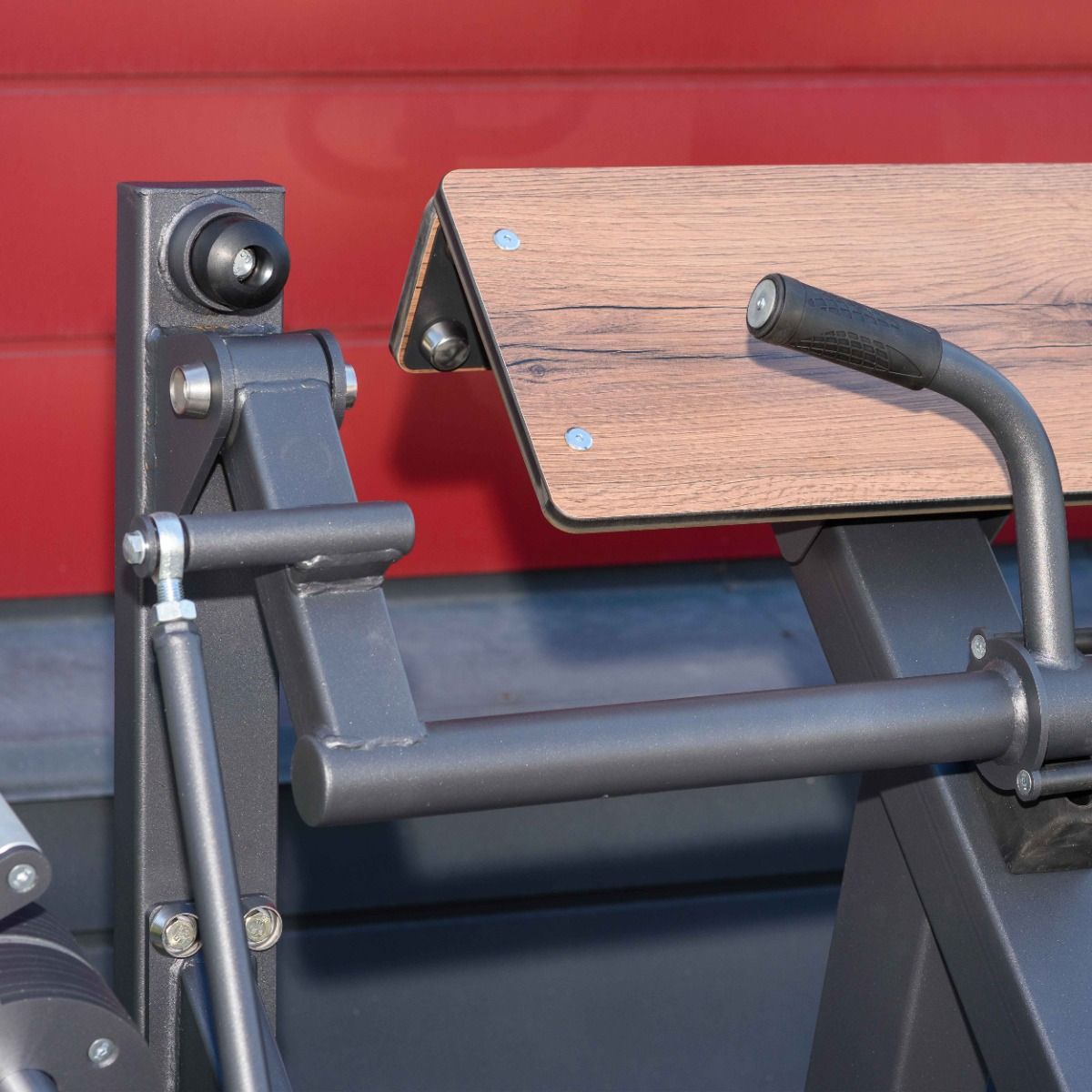 Скамьи тренажера 620×300 мм и 620×150 мм выполнены из высокопрочного ударостойкого HPL-пластика толщиной 12 мм. Угол наклона скамьи 45°.