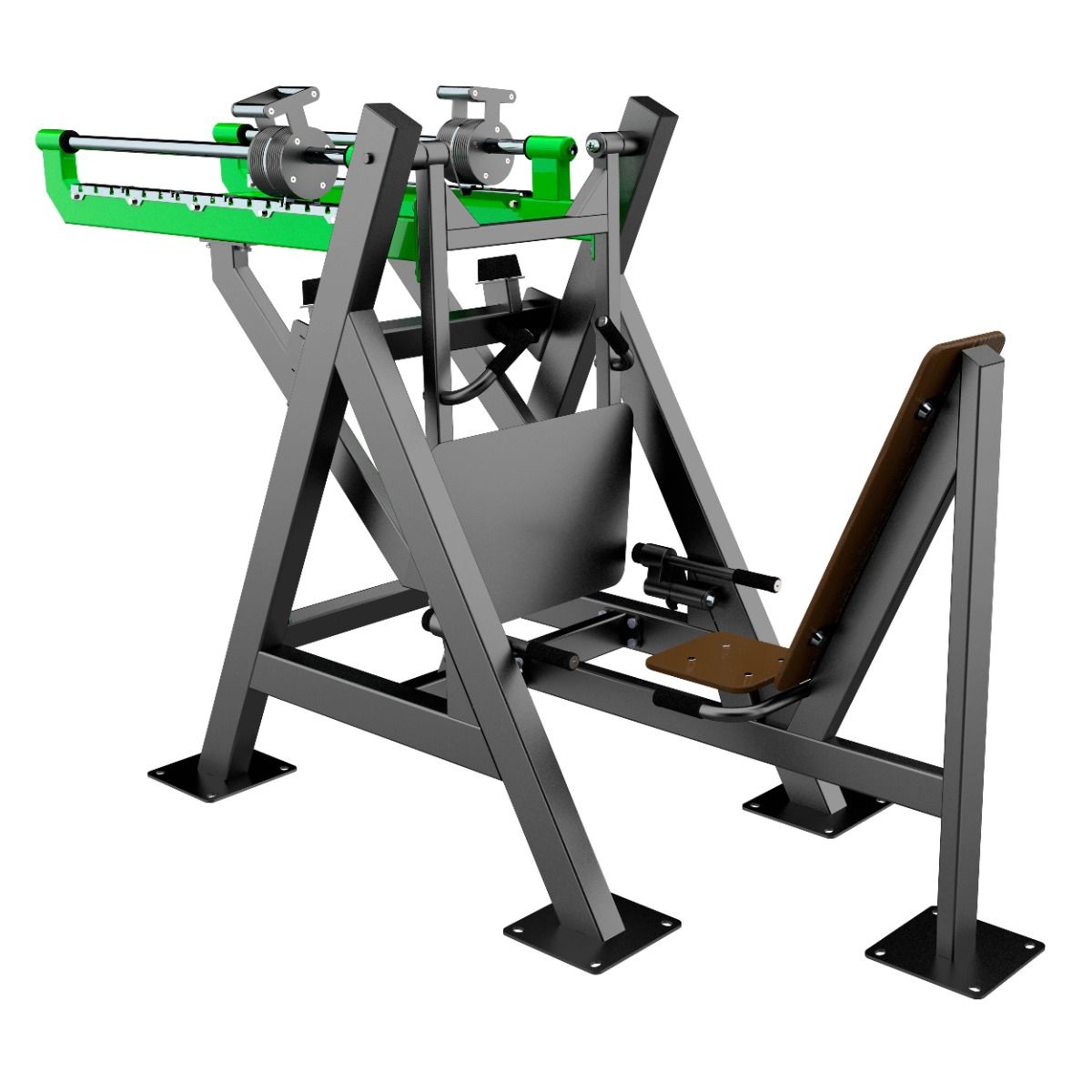 Несущая конструкция уличного тренажера выполнена из профильных труб 120×80 мм и 100×50 мм с толщиной стенки 3 мм. Детали изготовлены из листового металла толщиной 8 мм и 3 мм.