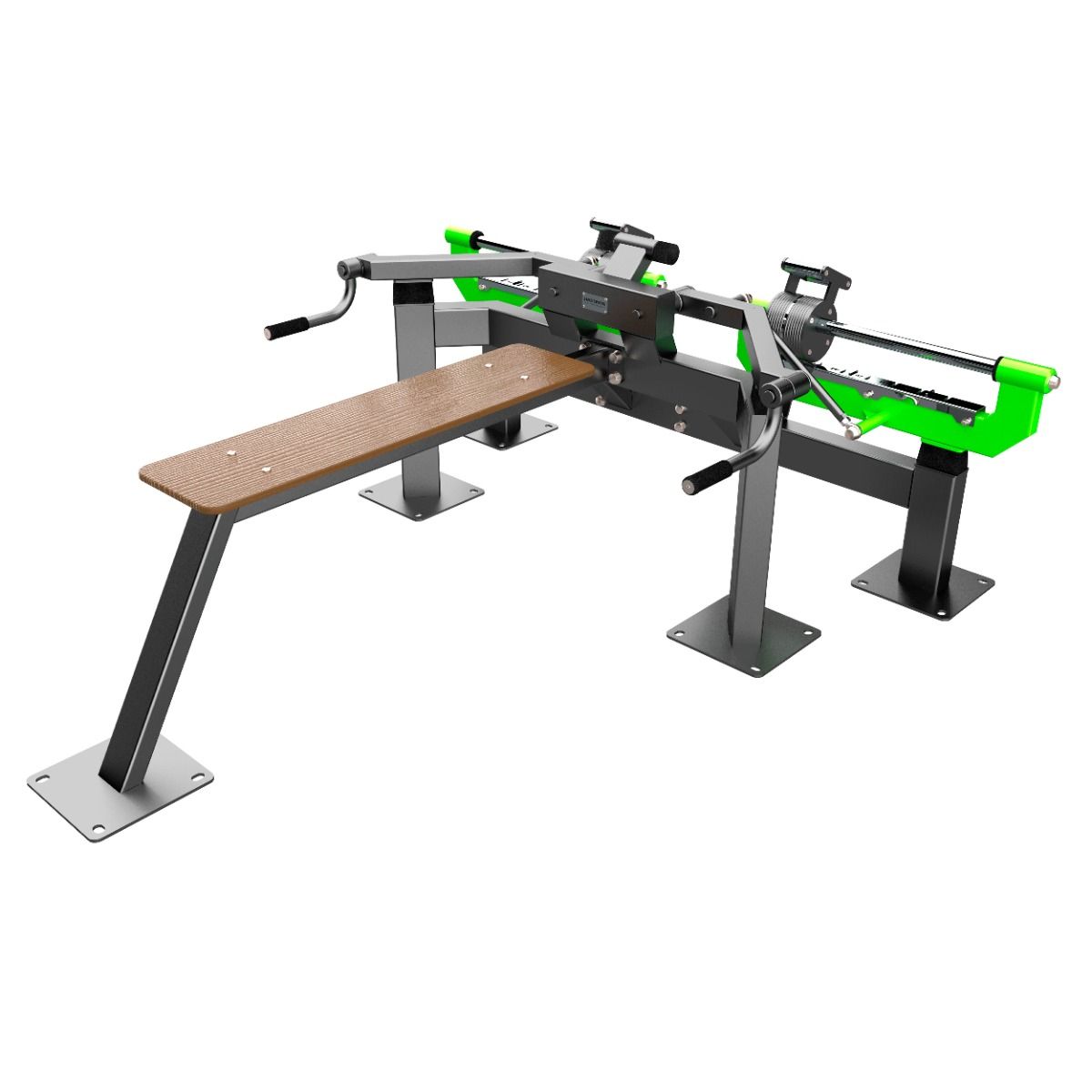 Скамья тренажера 1200×300 мм выполнена из высокопрочного ударостойкого HPL-пластика толщиной 12 мм.
