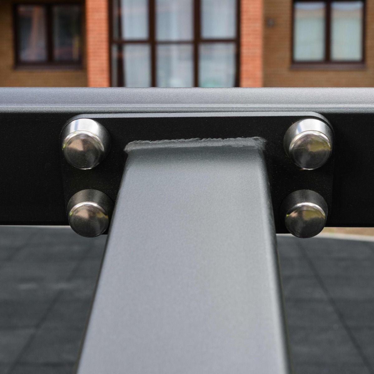 Надёжность и прочность разъёмных соединений конструктивных элементов тренажёра обеспечиваются за счёт использования высококачественного оцинкованного крепежа, выступающие части которого закрыты металлическими защитными колпачками.
