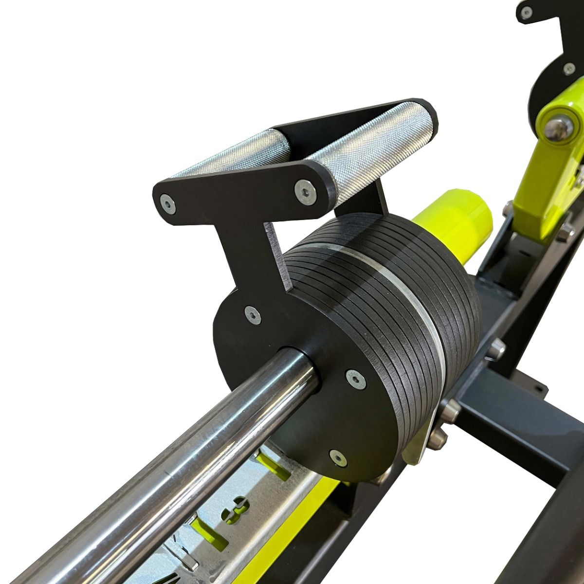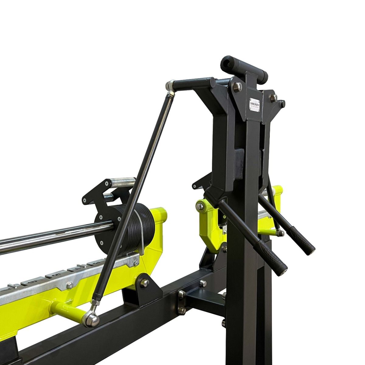 Подвижные рычаги оснащены передвижными грузовыми блоками, изготовленными из листового металла толщиной 8 мм. Перемещение грузовых блоков осуществляется с использованием подшипников при помощи парных рукоятей длиной 120 мм из металлического прутка с мягкой накаткой.