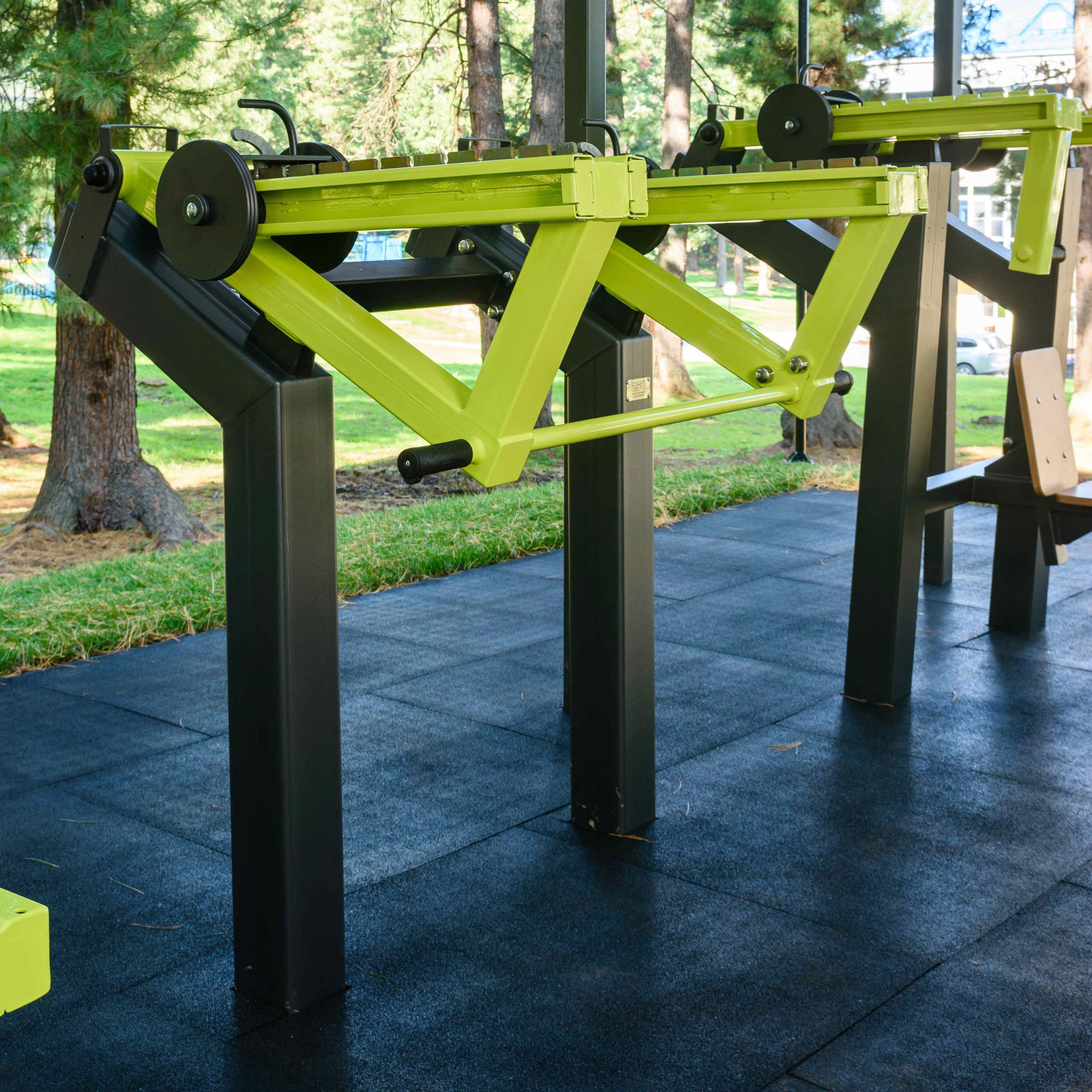 Надёжность и прочность разъёмных соединений конструктивных элементов тренажёра обеспечиваются за счёт использования высококачественного оцинкованного крепежа, выступающие части которого закрыты металлическими защитными колпачками.