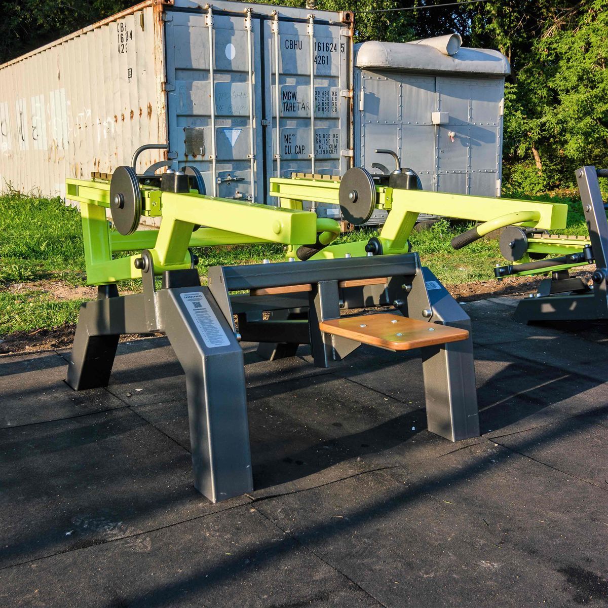 Оборудование состоит из закладных и тренажера. Закладные монтируются в грунт и заливаются бетоном. Тренажер крепится к закладным за счет фланцевого соединения и отсыпается песчано-гравийной смесью до уровня площадки. Фланцевое крепление позволяет надёжно смонтировать тренажер и беспрепятственно демонтировать при необходимости ремонта. Монтажные схемы прилагаются к комплекту поставки.