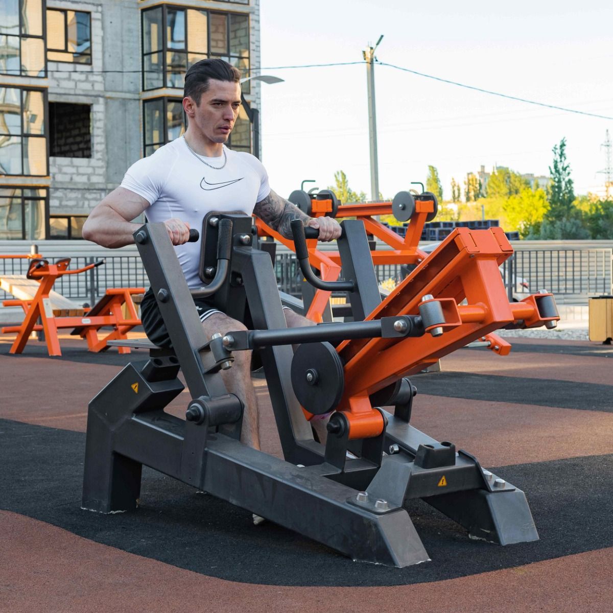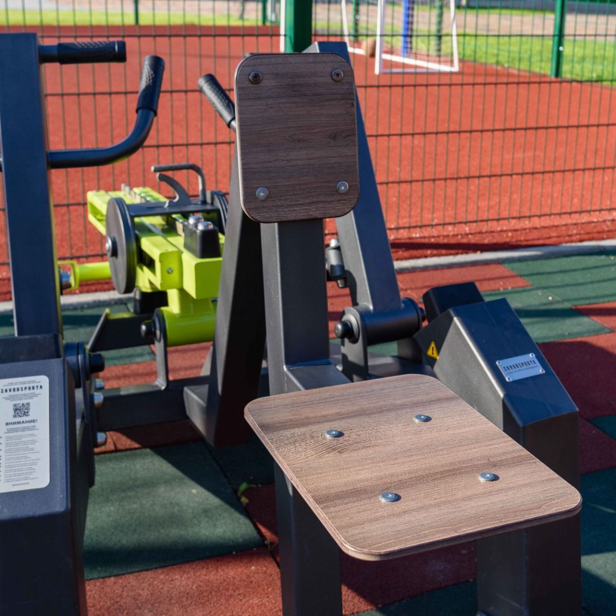 Сиденье 410×300 мм и спинка тренажера 250×190 мм с углом наклона 10° выполнены из высокопрочного ударостойкого HPL-пластика толщиной 12 мм.