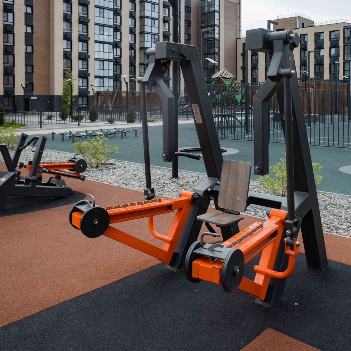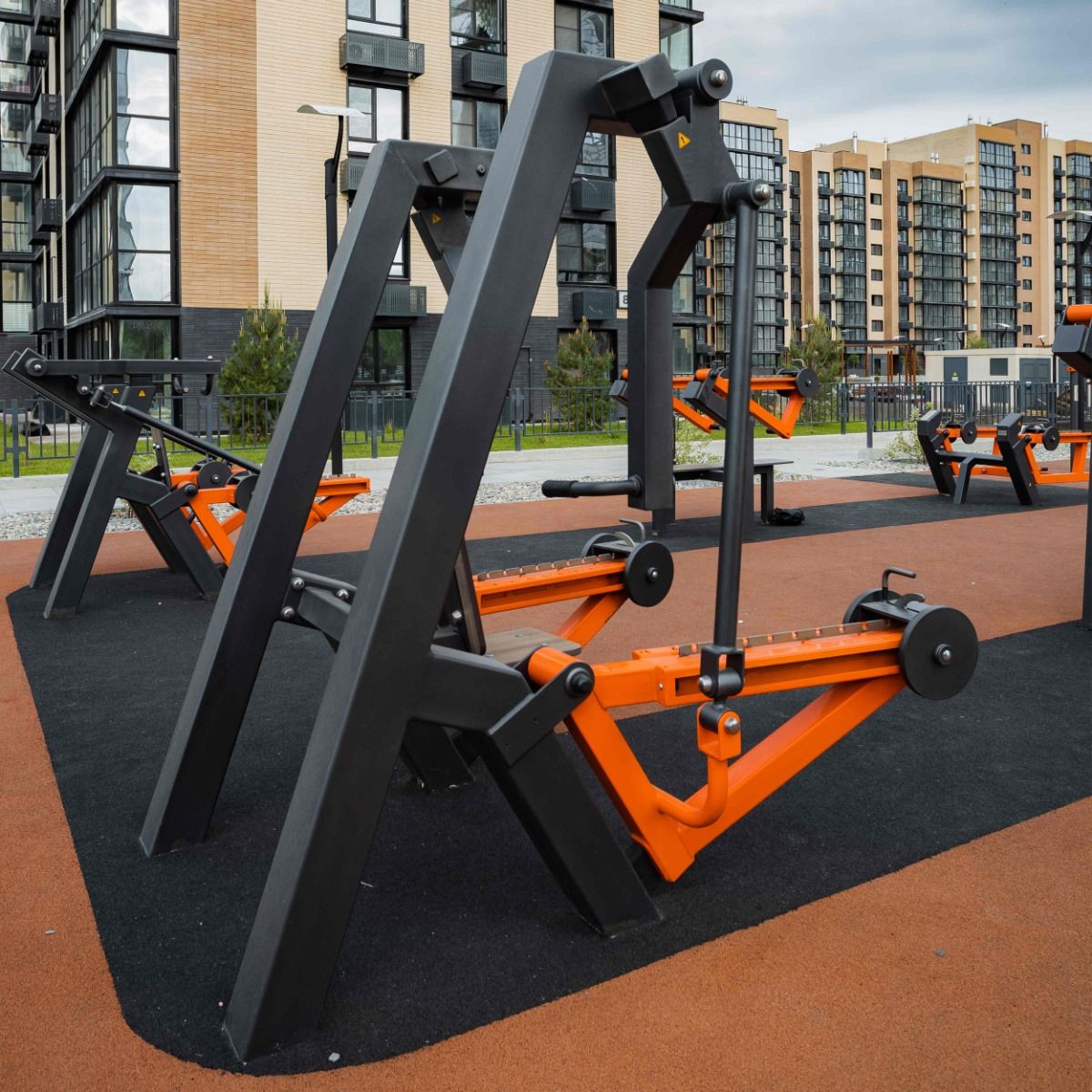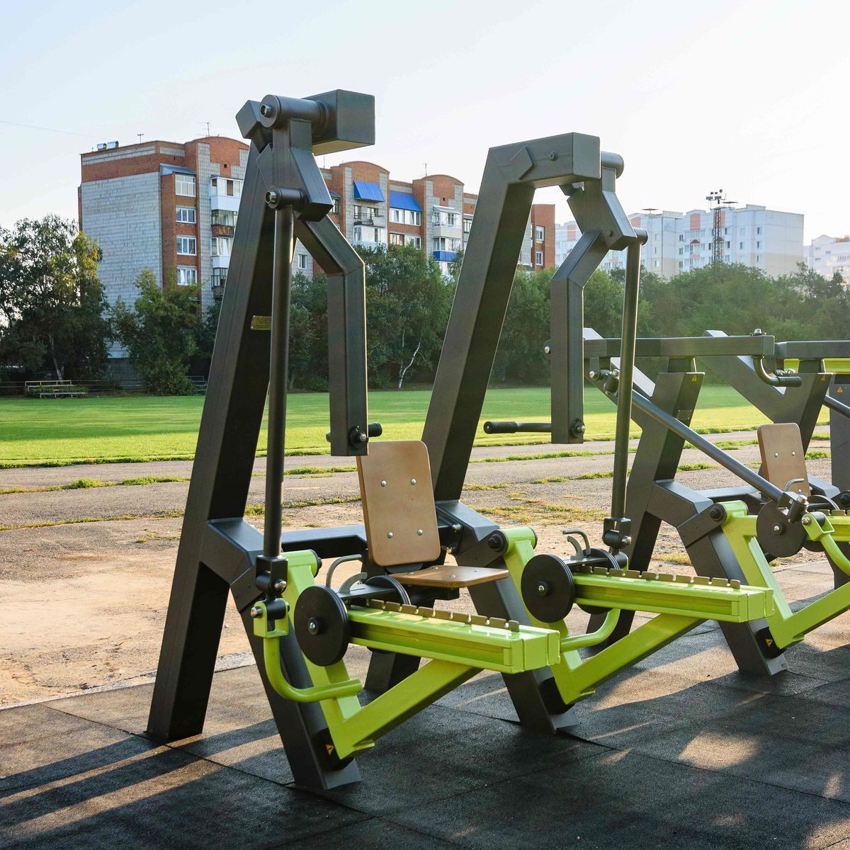Спинка 410×300 мм и сиденье тренажера 300×300 мм выполнены из высокопрочного ударостойкого HPL-пластика толщиной 12 мм.
