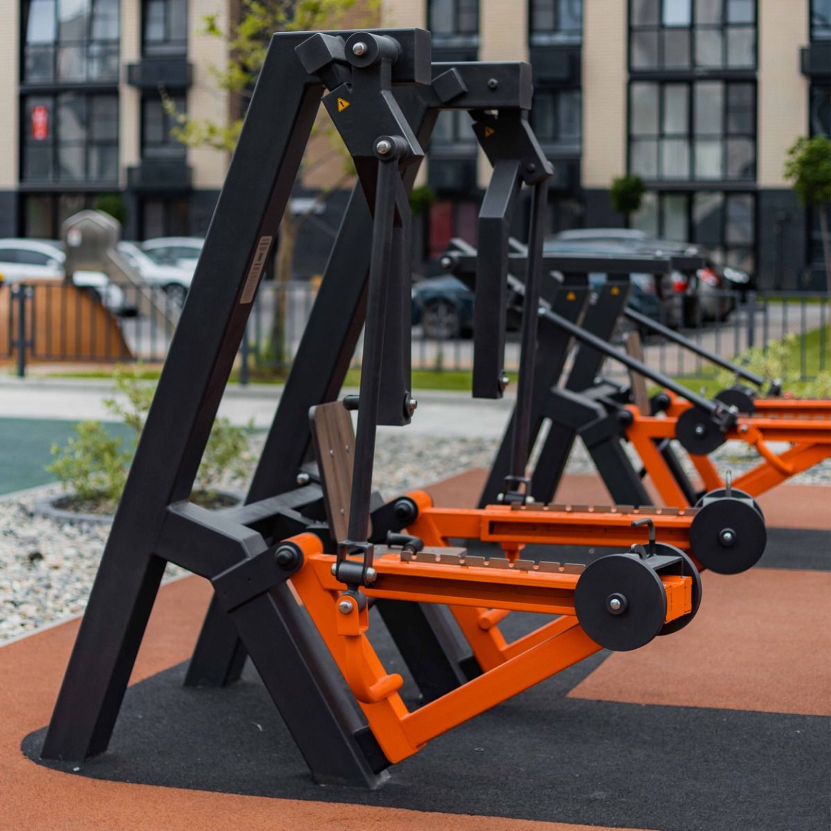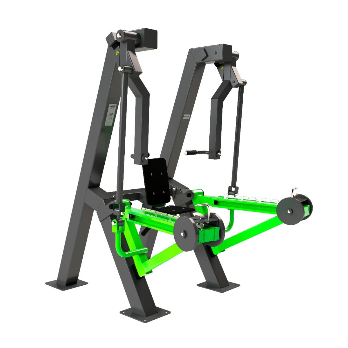 Надёжность и прочность разъёмных соединений конструктивных элементов тренажёра обеспечиваются за счёт использования высококачественного оцинкованного крепежа, выступающие части которого закрыты металлическими защитными колпачками.