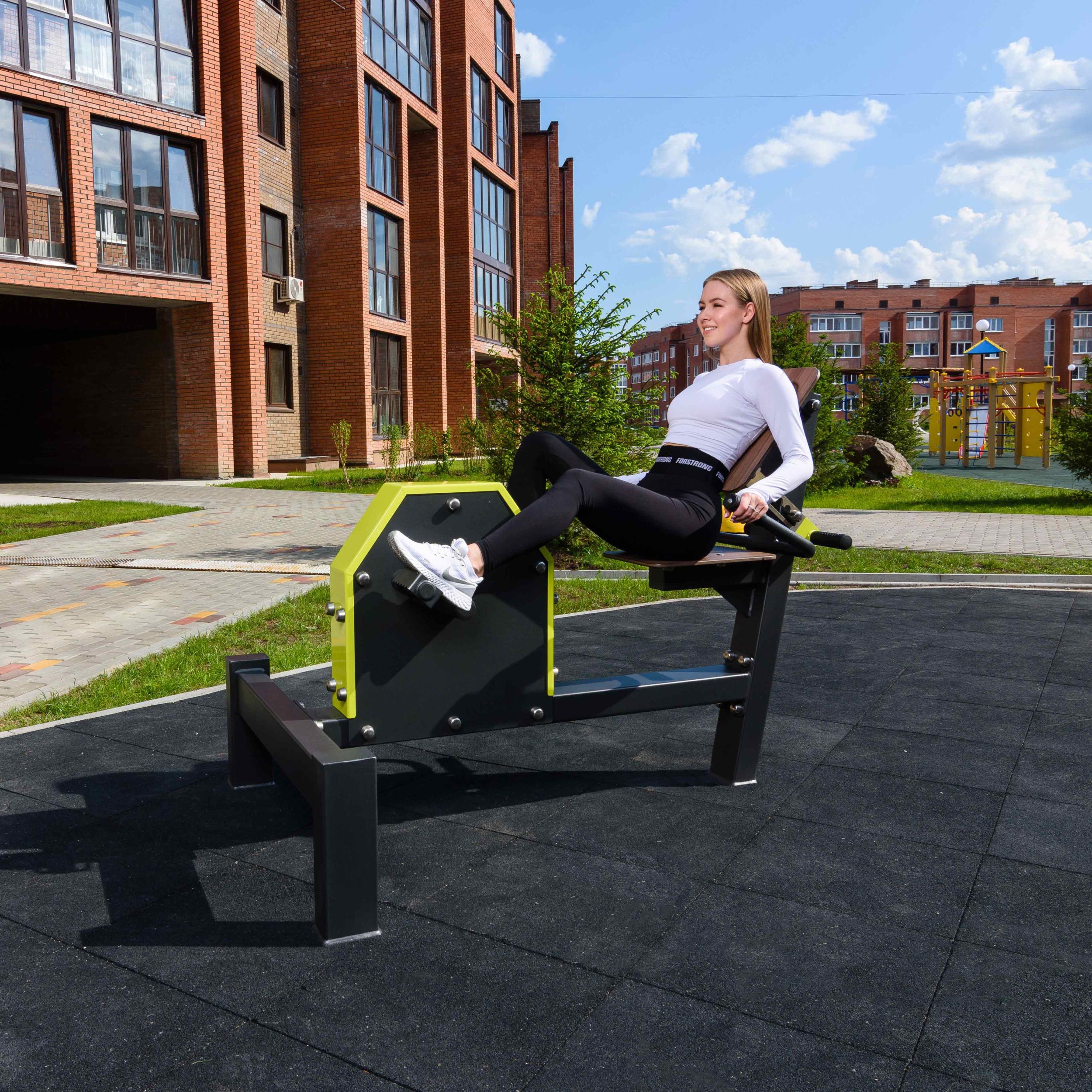 Сиденье 300×400 мм и спинка 300×400 мм тренажера выполнены из высокопрочного ударостойкого HPL-пластика толщиной 12 мм.