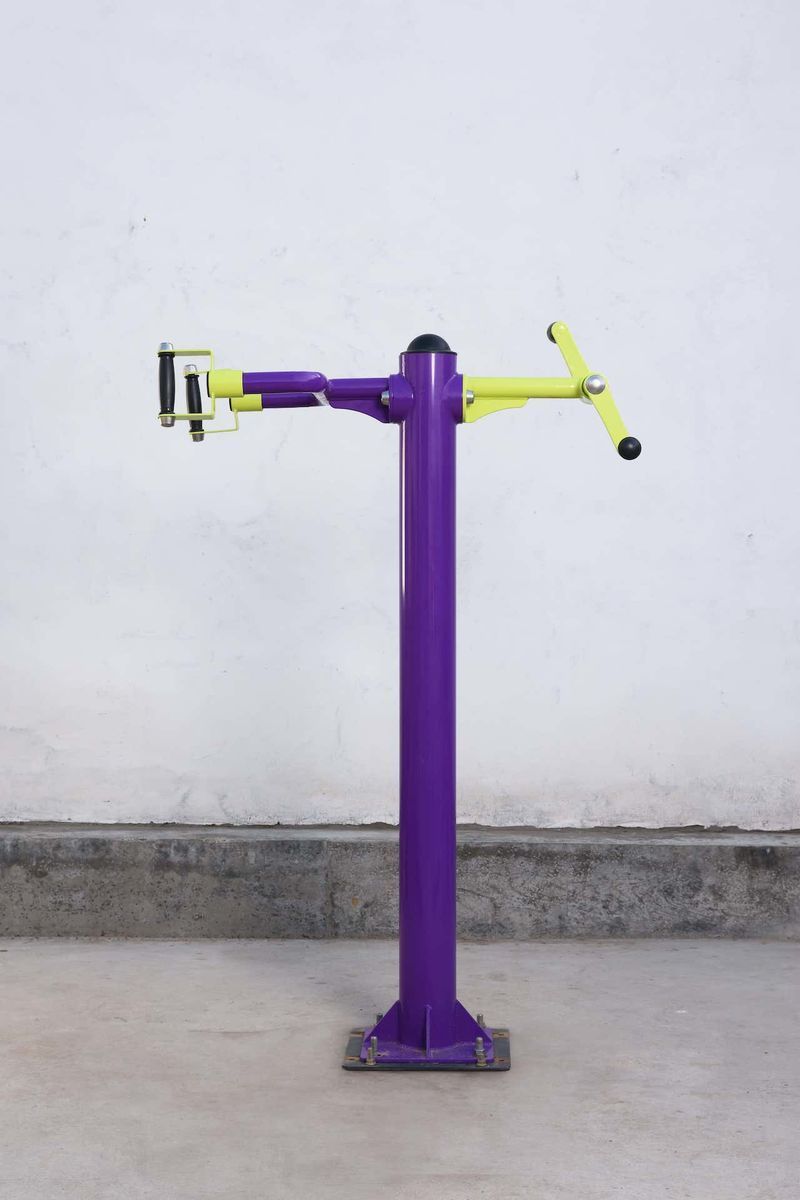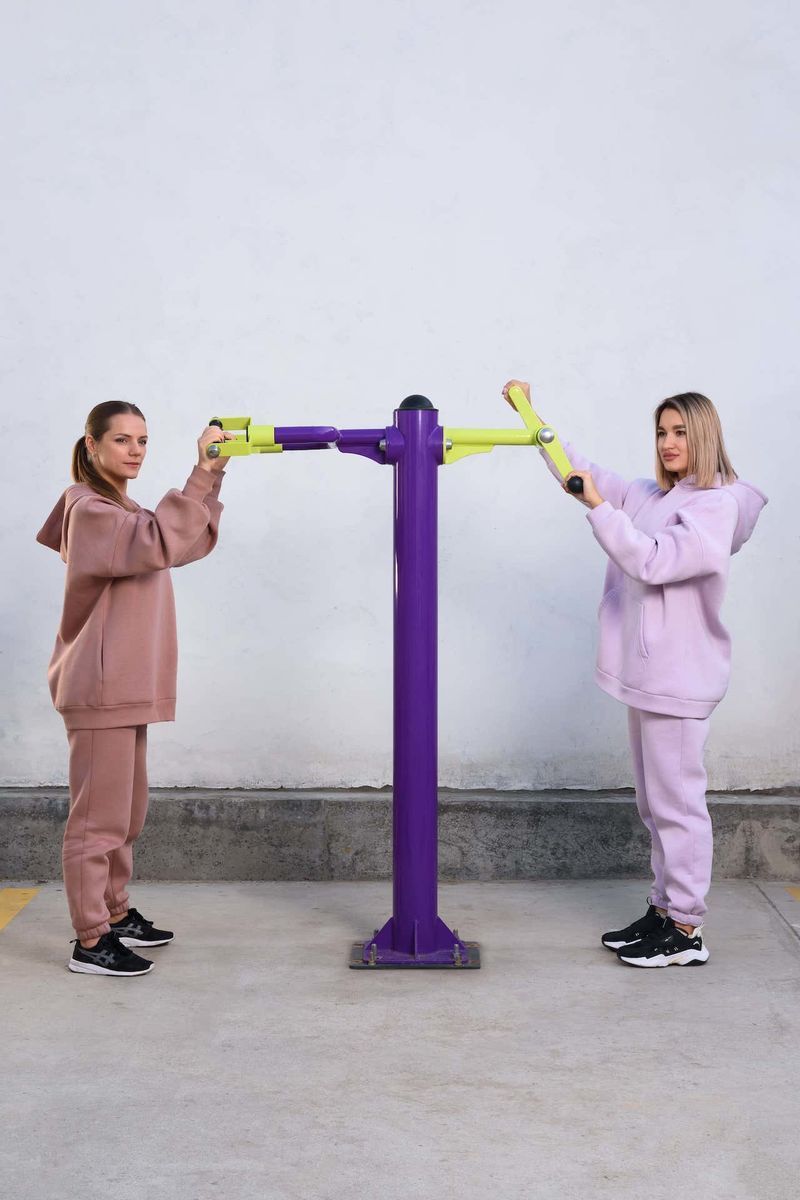 Механизм ограничения амплитуды движения с фиксированным углом хода предотвращает чрезмерное отклонение рабочих рычагов, исключая возможность травмирования пользователя и снижая ударные нагрузки на конструкцию. Дополнительно выполняет функцию антивандальной защиты, исключая контакт подвижных элементов между собой.