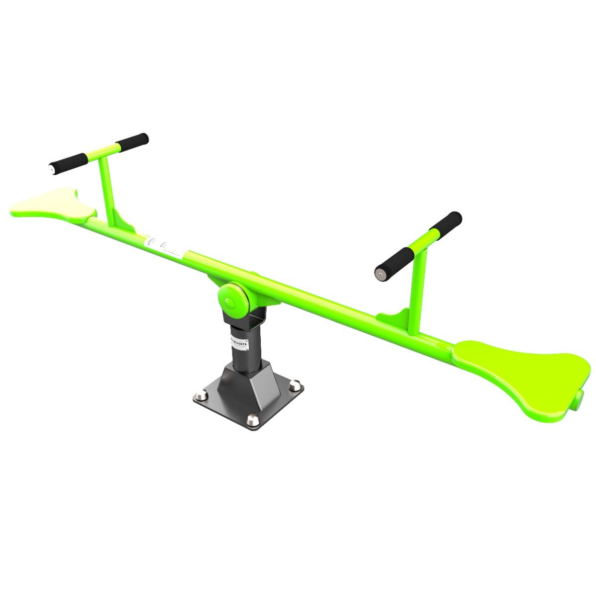 Фланцевое соединение опорного столба с закладной производится через четыре овальных отверстия размером 22×30 мм, расположенных на расстоянии 240 мм. Овальные отверстия под болтовое крепление М16 позволяют дополнительно регулировать положение тренажера. Резьбовые соединения защищены составными металлическими колпачками, входящими в комплект поставки.