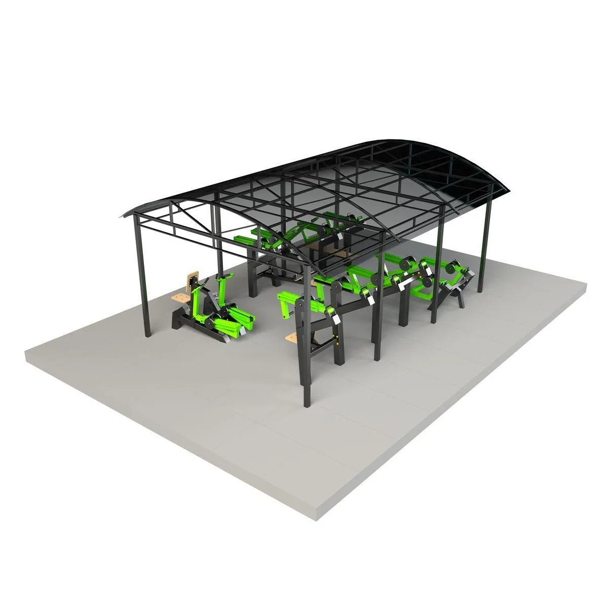 Спортивный комплекс состоит :RTRN-1801 Тренажер Жим сидя с переменной нагрузкой, ZSO/ RTRN-1804 Тренажер Приседание с переменной нагрузкой, ZSO. RTRN-1800 Тренажер Жим лежа с переменной нагрузкой, ZSO. RTRN-1807 Тренажер Вертикальная тяга с переменной нагрузкой, ZSO. RTRN-1809 Тренажер Наклонная тяга с переменной нагрузкой, ZSO. RTRN-1813 Становая тяга переменной нагрузкой, ZSO. EGB-5020 Навес для тренажеров теневой 6300х4800х3200,ZSO