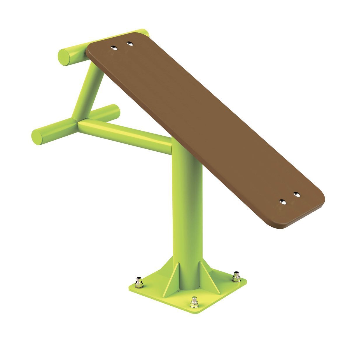 Монтаж тренажера производится на закладную, забетонированную заранее на глубину 700мм до пластины, пластина после установки тренажера должна быть засыпана ПГС. Крепление к закладной производится пластиной в основании тренажера, с размерами 304х304 мм.